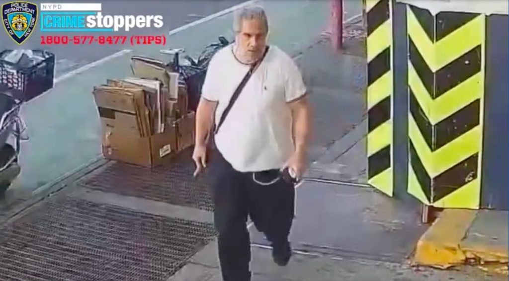Cops said the suspect has a light complexion, heavy build and salt and pepper hair. He was wearing a black sweat jacket, black sweatpants, white short-sleeved shirt and black sneakers and was carrying a black cross-body bag.