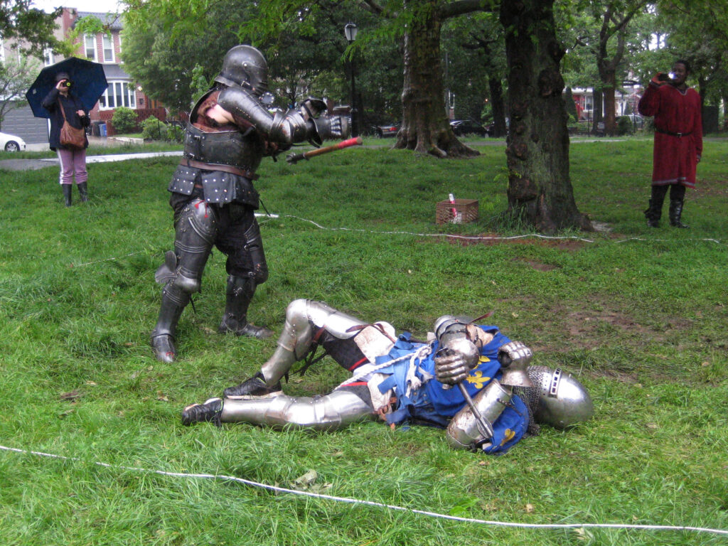 Medieval and Renaissance re-creation group SCA Ostgardr showed displays about Viking life and led a march of reenactors, and Gladiators NYC demonstrated combat.