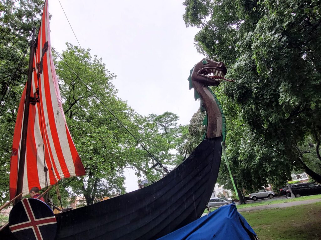 “We were surprised with how many people showed up with the wet weather,” she said. “Kids of all ages climbed the ladder to view the inside of the Norseman Viking ship, back to us after several years.”