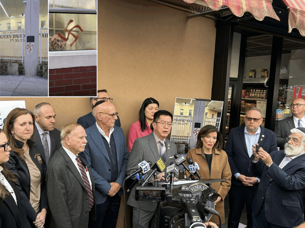 • Southern Brooklyn — Swastikas painted outside Gravesend yeshiva