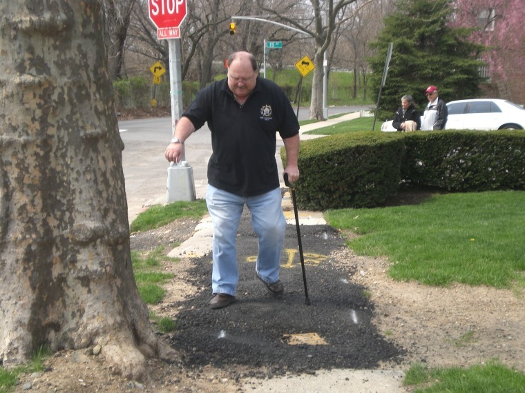 Residents say walking between 15th Avenue and 16th Avenue can betreacherous. Due to National Grid replacing gas lines, the sidewalkis bumpy and broken. Tony Favale, a resident of IndependenceGardens, the co-op that runs along Shore Parkway, said the problemsstarted in December when the Department of Transportation beganconstruction work along the Belt Parkway– and have continued eversince. First, the street itself was cut open to put in a new sewerline. They closed that up and repaved it nicely, he explained,adding that he has called 3-1-1 and National Grid numerous times tocomplain, but was told it was being looked into. Favale has notcontacted any local officials yet. Then, National Grid cut up thesidewalk to replace rotting pipes, which is fine, Favalecontinued. But when they closed it back up, they did a bad job. IfI did this as a homeowner and left it like this, I would beresponsible for it. Adding insult to injury, Independence Gardenshas many elderly and disabled residents. This is not safe by anymeans, although it is temporary, Favale said. If someone fallsit’s a domino effect as to who is responsible. We homeowners willend up paying for it, not the city. But National Grid spokeswomanKaren Young told The Brooklyn Spectator that the sidewalks will befixed as soon as the weather cooperates. We did move a gas main inthat area due to sewer repair, Young said. Right now, permanentrepair is scheduled to happen as soon as possible. The materialsused are very sensitive and the temperature has to be just right.We hope to get it fixed right away. Gary Abrahamsen, a disabledresident of Independence Gardens, said that besides the sidewalkbeing nearly impossible to walk on, snowplows and constructionequipment used to fix the Belt Parkway have eroded the curb cutsnear his home. I have called 3-1-1 so many times, Abrahamsensaid, Six-out-of-eight people living in this community arehandicapped. When Access-A-Ride comes to pick up my mother, whocannot walk, they always have a hard time getting into the drivewaybecause all of the curb cuts are broken. If you are not careful,you can bust a tire in these potholes or even fall and twist yourankle, echoed his wife, Lena.