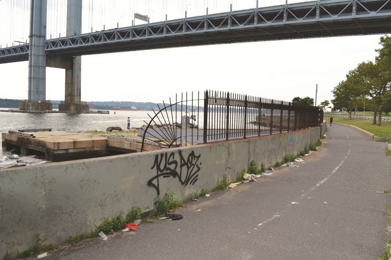From under the bridge heading south towards Bensonhurst, thereis a sizable stretch of the path without a garbage can-it alsohappens to be the only area where trash has gathered along theroute.