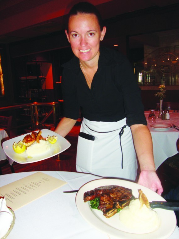 Tawnya delivered the broiled filet of sole and the T-bone steak with a smile at Hunter's Steak and Ale House.