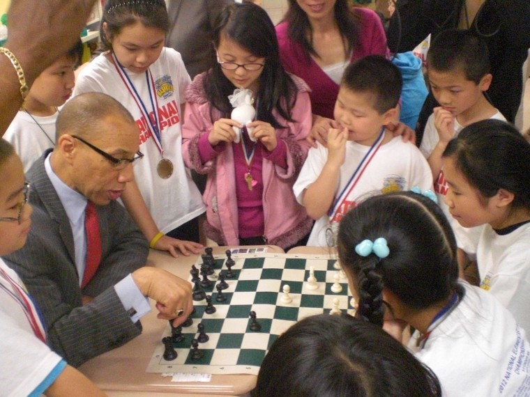 Chancellor Dennis Walcott from the citys Department of Education congratulated the students during a visit, during which the kids bested him in a game filled with laughs and intense stares of concentration.