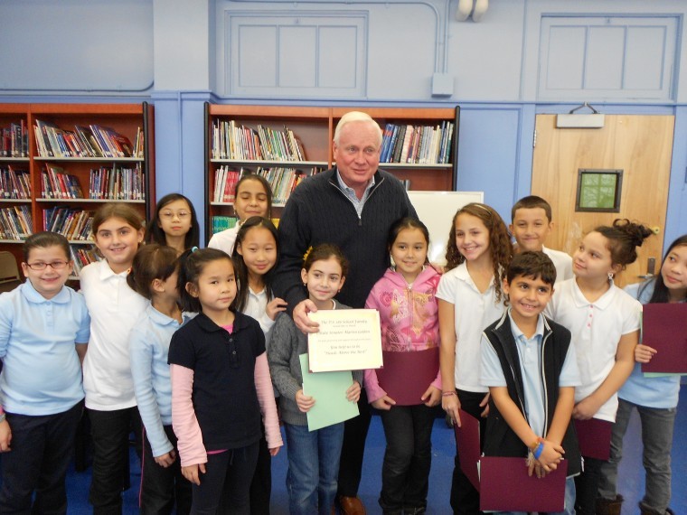 Congressmember Michael Grimm was the first of nine supporters to be thanked; and although he could not be present for the praise, Fran Vella-Marrone, his Brooklyn office director, received the certificate in his honor. I want to thank you for your thank you, Vella-Marrone said and explained to the children that Grimm was in Washington D.C. trying to get funds to help people affected by Hurricane Sandy.