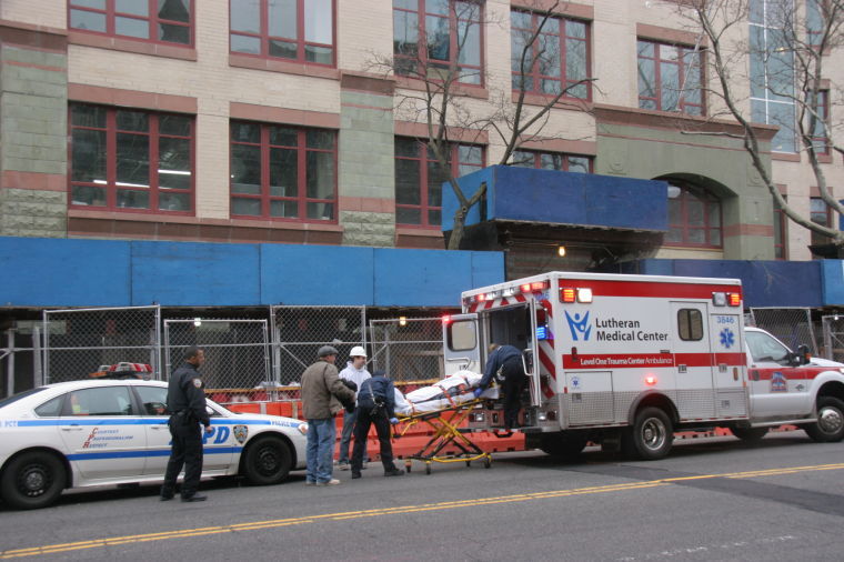 According to the Fire Department, on Monday, March 25 at 10:21 a.m., a 36-year-old male fell off a six feet high ladder at the site of P.S. 331, currently under construction at Fourth and Ovington Avenues. This is the site of the former Green Church.