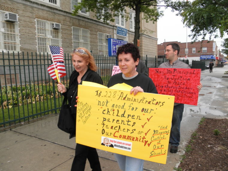 Angry former teachers of I.S. 228, David A. Boody Junior High School, rallied in front of the school building the morning of Monday, June 10, claiming that Principal Dominick DAngelo is trying to save money by firing qualified teachers and not giving them tenure.