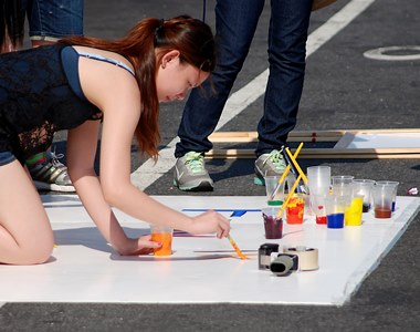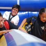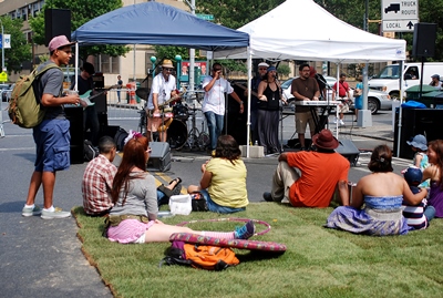 There weren’t large crowds, but that suited the local kids and families just as well, friends and neighbors splashing, dancing, eating, shopping, and more at the Grand Street Business Improvement District’s Weekend Walk Block Party, which was the second weekend to feature live music and activities on a stretch of Grand Avenue that was closed to traffic especially for the occasion.