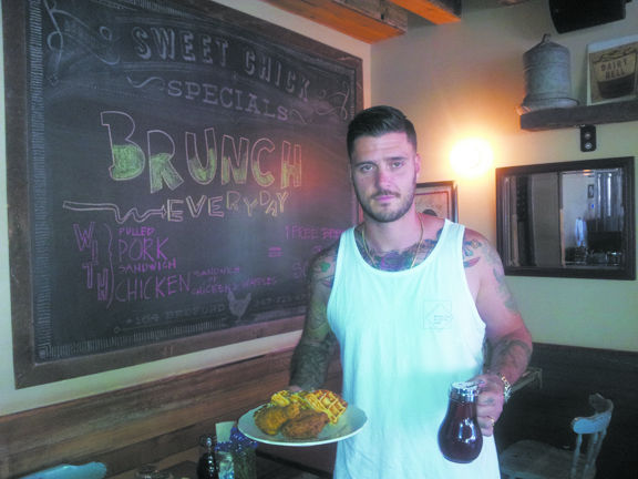 That description pretty much sums up our take on the dining experience at Sweet Chick, where the sweet and the savory collide in the most delicious and often most surprising ways.Since opening in early February, 2013, the casual, cavernous and brightly-lit corner space in Williamsburgs Bedford Avenue/North Seventh Street hub has quickly made a name for itself as the go-to place for Chicken and Waffles, which come in a variety of flavors, such as Classic, General Tsos, Bacon & Cheddar, and Rosemary & Mushroom (all $16).There is even a meatless chickn version, made out of seitanaka wheat glutenthat is so good that the meat-eater in our group kept stealing it from the vegetarian.Considering the fact that each flavor features moist, tender meat that has been brined for hours and fried in a thin-yet-thick-enough layer of breading, paired with fluffy waffles and optional blueberry/lemon/mixed herb butters, its popularity is no surprise.However, there is more to Sweet Chicks success than the chick portion of its name.No one should leave Sweet Chick without sampling from a regularly changing entire lineup of sweets: puddings in jars, bread puddings in skillets, pies, lemon bars, gelato and more.Its down-home flavors, like something youd get at grandmas house, explained pastry chef Roni Ross.Some dessert standouts include a Butterscotch Pudding with Chocolate Ganache and espresso shortbread ($8) and a Lemon Bar with Coconut Sorbet and Pineapple Sauce ($9) which is refreshing as a palate cleanser.We like the menu to stay fresh because much as people like one thing, we want them to come in and try new items, too, explained co-owner John Seymour. Puddings in mason jars is standard Sweet Chick. Yesterday, we had a Biscuit Banana Bread Pudding with Rum Raisin [and] youd be hard-pressed to find a better dessert that is homey and perfect for a date night.Whether you have dessert before or after dinner, also treat your tastebuds to one or more of Sweet Chicks signature savory dishes, which include the Kale BLT Salad ($12), made with thick strips of house-cured bacon from New Jersey-based DArtagnan Foods drizzled with a not-at-all-overwhelming tangy lemon vinaigrette; the kid-friendly Mac & Cheese ($8) made with shell pasta and topped with a Ritz Cracker crust; and the Appalachian Cider Beans ($21) which come topped with a poached egg and cornbread on the side.Other popular non-chicken dishes are the House Dry-Aged Rib Eye ($32), the Arctic Char ($21), and Mussels (ask for prices), as well as Bacon-Wrapped Oysters ($9) and a sweet-savory Hominy Brussels Sprouts ($7) side dish that has juicy raisins dotted throughout. Sweet Chick may appeal to our collective nostalgia for lazy Sundays by the beach or in a cozy bungalow or cabin somewhere, but the aesthetic also has a touch of Brooklyn-DIY sensibilities, thanks to Seymours hand-crafted furniture and salvaged doorknobs from Bed-Stuy and other decorations recycled from around the borough.Music also varies depending on who is working and the time of day. Late brunch can be hip-hop, early brunch more of a 50s and 60s playlist with R&B and reggae, and weekdays often feature country and folk tunes.Top it all off with a specialty cocktail from the bar and youre in for a perfect weekend brunch or just-because weekday dinner out.SWEET CHICK164 Bedford Avenue, Brooklyn, NY 11249347-725-4793Open daily 11 a.m. to midnight; until 2 a.m. on Fridays and Saturdayshttp://sweetchicknyc.comDINING OUT: Sweet Chick