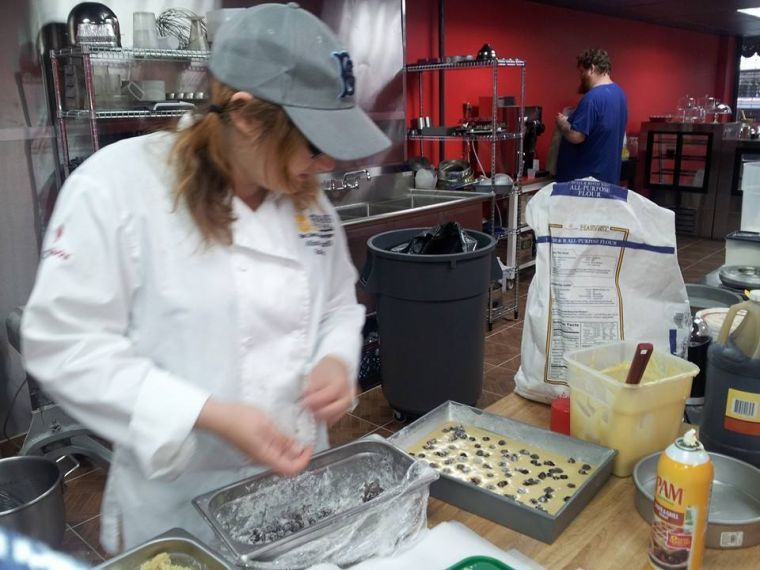 Allison Robicelli prepares blueberry almond coffee cake at Robicelli's Bakery.