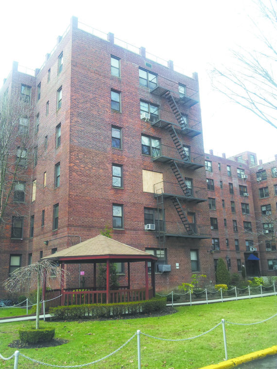 The windows of apartment 3F at 15 Oliver Street remain boarded up after the January 7 fire.