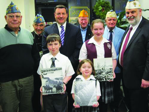 Students Brian White, Sarah White and Noreen White from St. Anselm Catholic Academy with Chairperson of the Board Jim McHugh, accepting the Time Life World War II collection from Commander Michael Connors and members of the Kings County Chapter of the Catholic War Veterans.