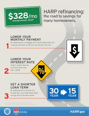 Click Here to Enlarge Image.A government initiative, introduced by the Federal Housing Finance Agency, is making it easier to refinance. The Home Affordable Refinance Program (HARP) is enabling homeowners who owe almost as much or more than the current value of their homes to take advantage of the long-term benefits of refinancing.With recent program modifications and interest rates still at historically low levels, it is now easier to refinance with HARP, and those who have been turned down in the past may now be eligible.If you are current on your mortgage payments, your loan is backed by Fannie Mae or Freddie Mac, and you have little or negative equity in your home, you may be eligible for HARP. To find out more information, visit www.harp.gov.Before resigning yourself to high interest rates, take a look at available options.*****Turned Down in the Past? Refinancing May be Easier Now