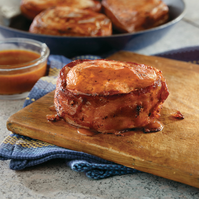 But perhaps this trend should come as no surprise. After all, a full 78 percent of Smithfield’s survey respondents agreed that bacon makes everything better.Whether you’re pairing your morning eggs with strips of their most perfect protein sidekick, loading up a BLT with an extra layer of bacon-y crunch, or following the lead of the nation’s top chefs and experimenting with new flavor combinations, you’re likely to achieve a crowd pleaser.Quirky products and recipes aside, for the average consumer, the simple versatility of bacon makes it a winning addition to most meals. Even a classic pork chop, one of the most popular cuts of fresh pork, takes on a new personality when paired with the distinctly savory flavor of bacon, as in this recipe for Bacon Pork Chops with BBQ Glaze.For more inspired recipes featuring beloved bacon, visit www.Smithfield.com and www.Facebook.com/CookingWithSmithfield.Image and recipe provided by The Pork BoardRecipe: Bacon Pork Chops with BBQ Glaze