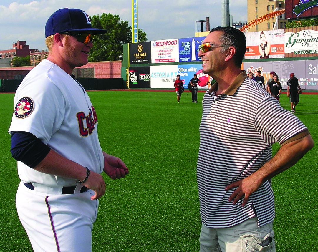 Cyclone All Star closer Shane Bay (11 saves) has a word with the Mets all-time save leader (424) and four-time MLB All Star John Franco.