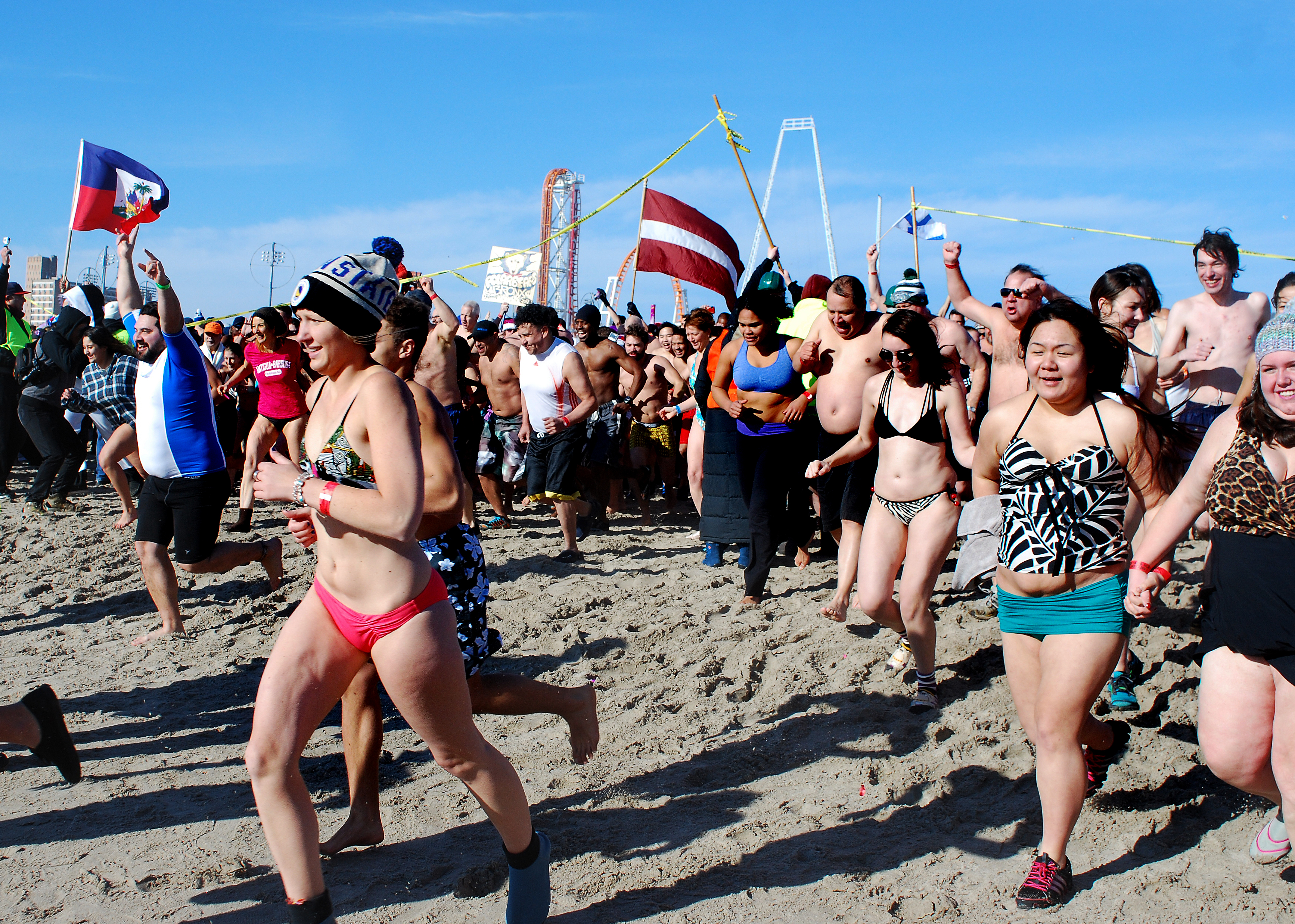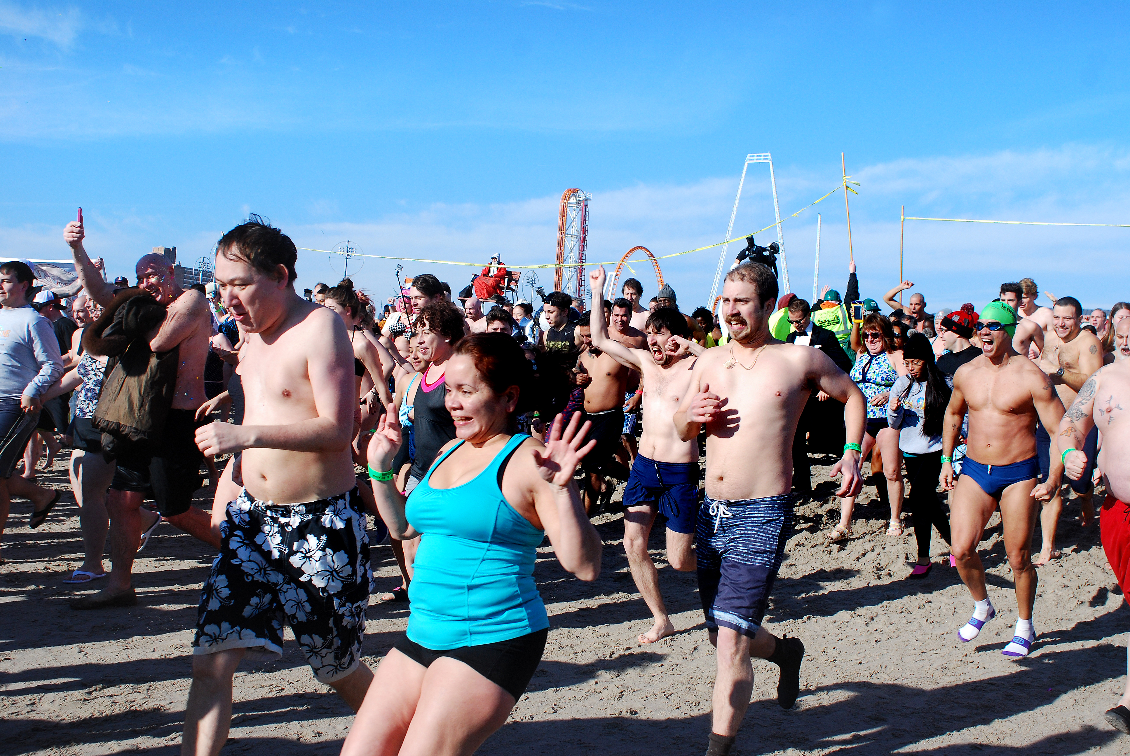 The icy tradition turned out thousands of bathing-suit wearing Brooklynites, ready to take the plunge into the Atlantic Ocean on the 39° day.