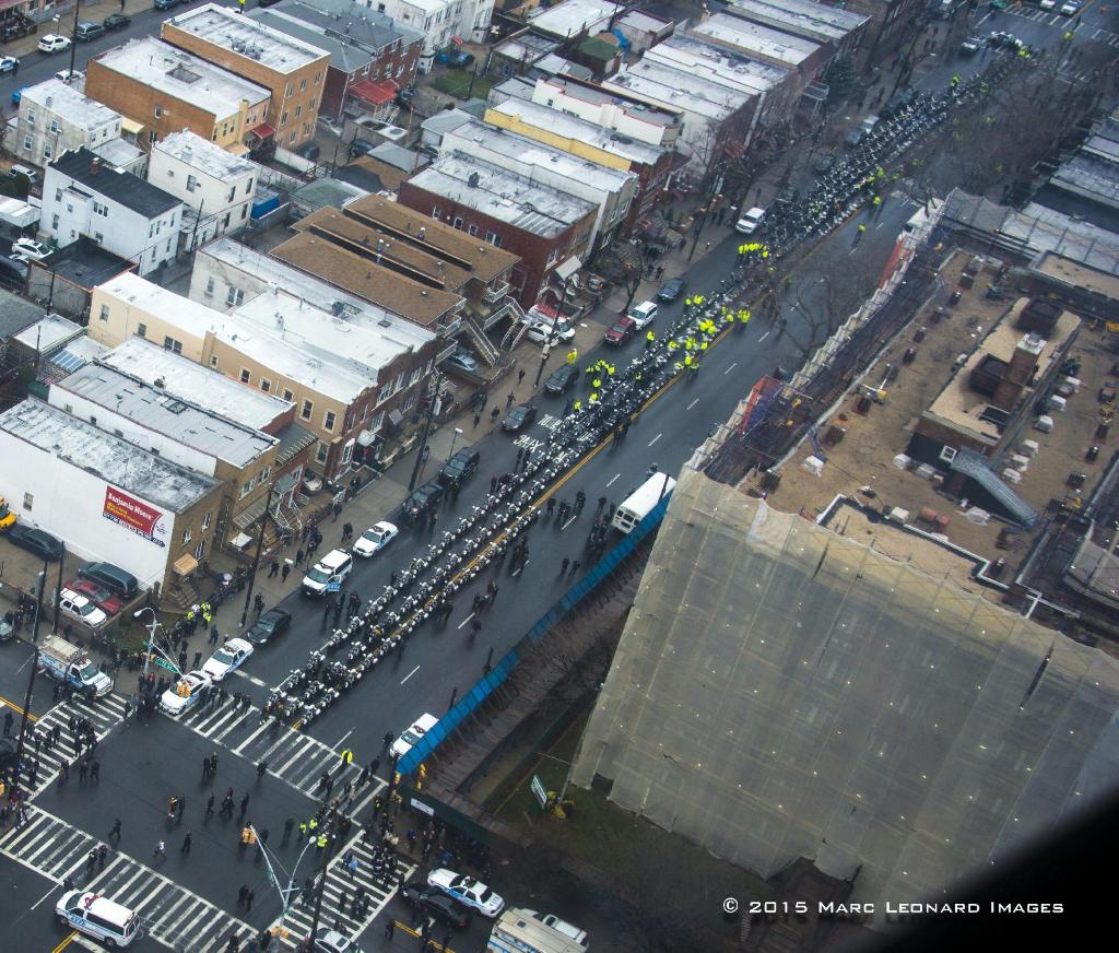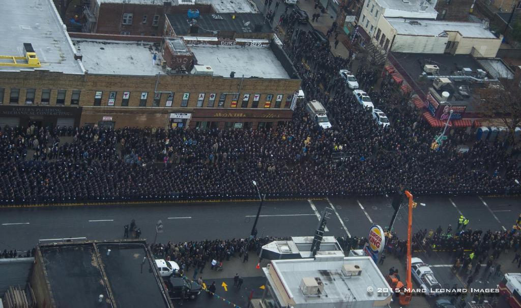 Close to 20,000 uniformed police officers from across the country gathered at Aievoli Funeral Home in Dyker Heights on the gray morning of Sunday, January 4 to lay local resident Detective Wenjian Liu to rest.