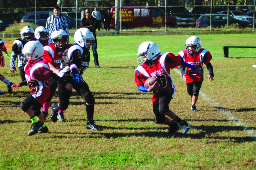 The game between the Parkville Youth Organization Cardinals and Steelers started out well when Cardinal Aiden Farley made a slick fumble recovery but the Cards failed to cash in on it.