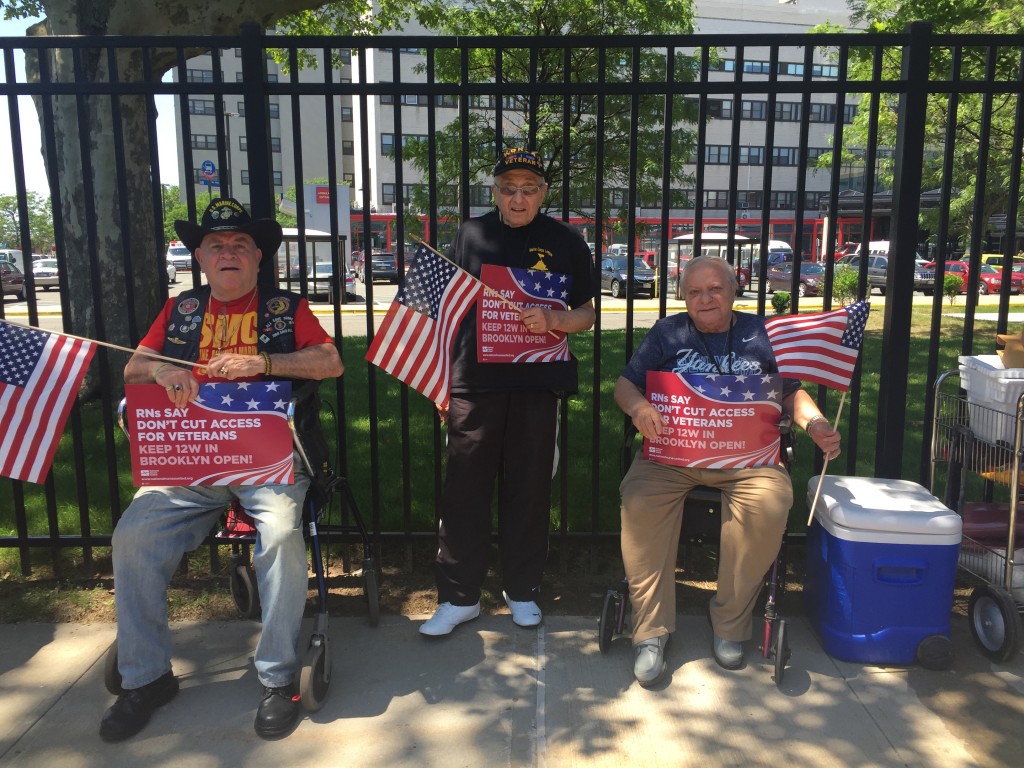 The highly attended two-hour informational rally, held outside the hospital on Monday, June 22, saw a group of veterans proudly wearing shirts proclaiming their military affiliation and holding up American flags. Nurses held up signs that read “RNs say don’t cut access for veterans and Keep 12 W in Brooklyn open.”