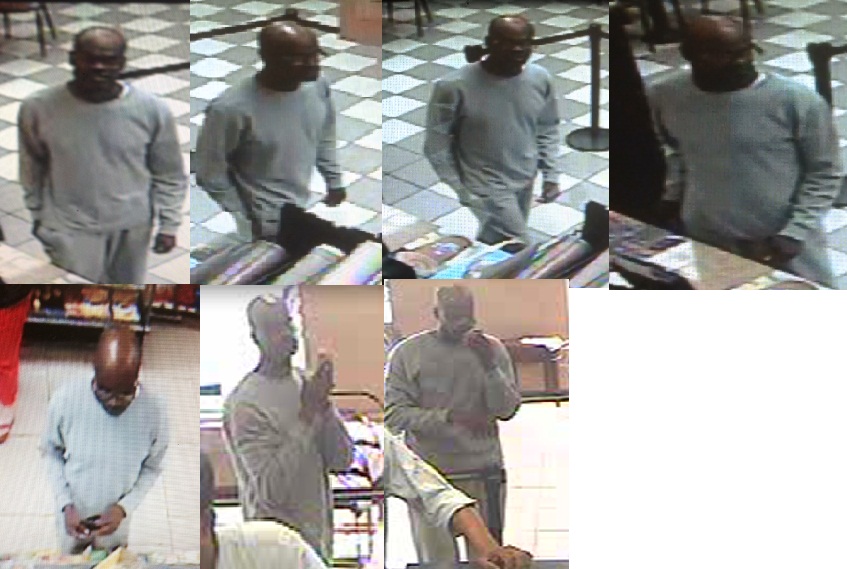 The suspect is further described as being 6’1” in height and bald headed. He was last seen wearing a long sleeved beige shirt, white pants and black shoes.