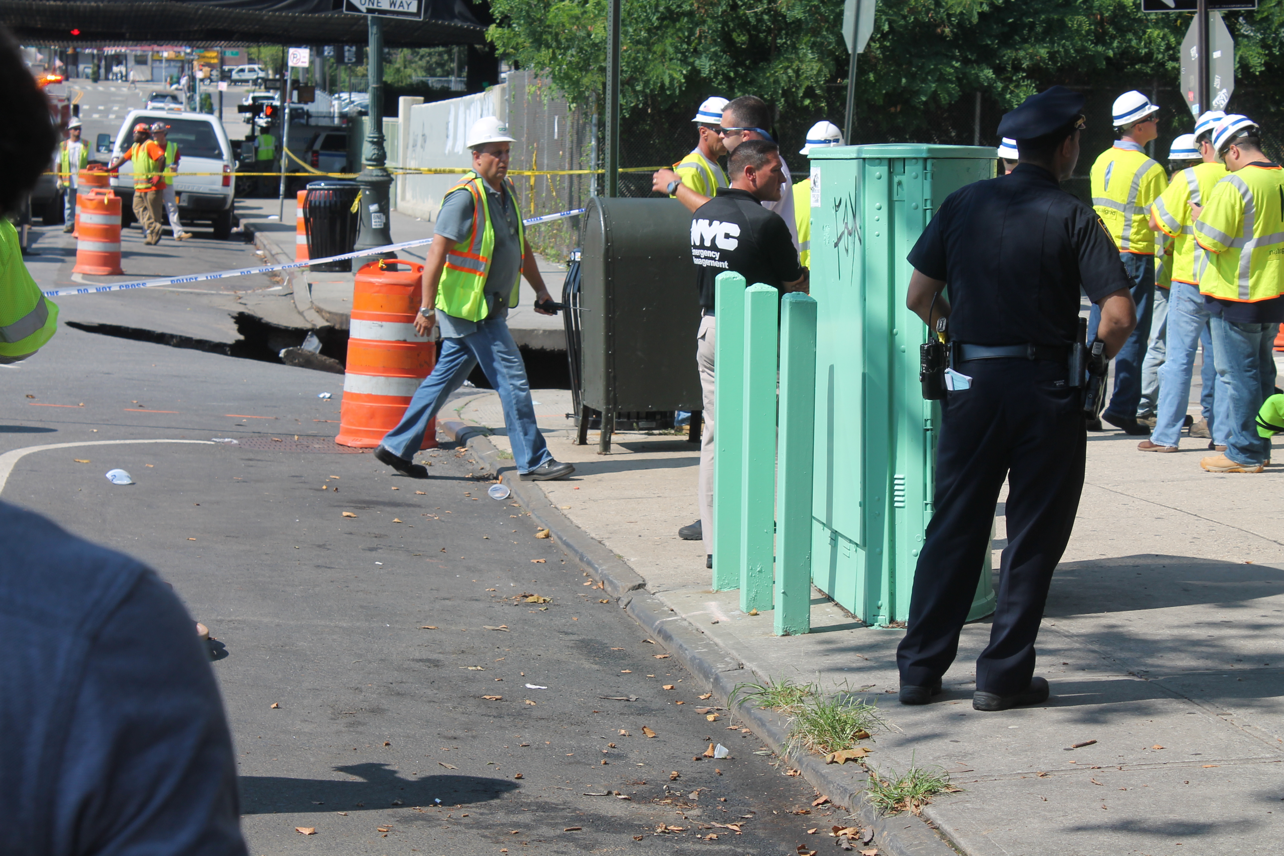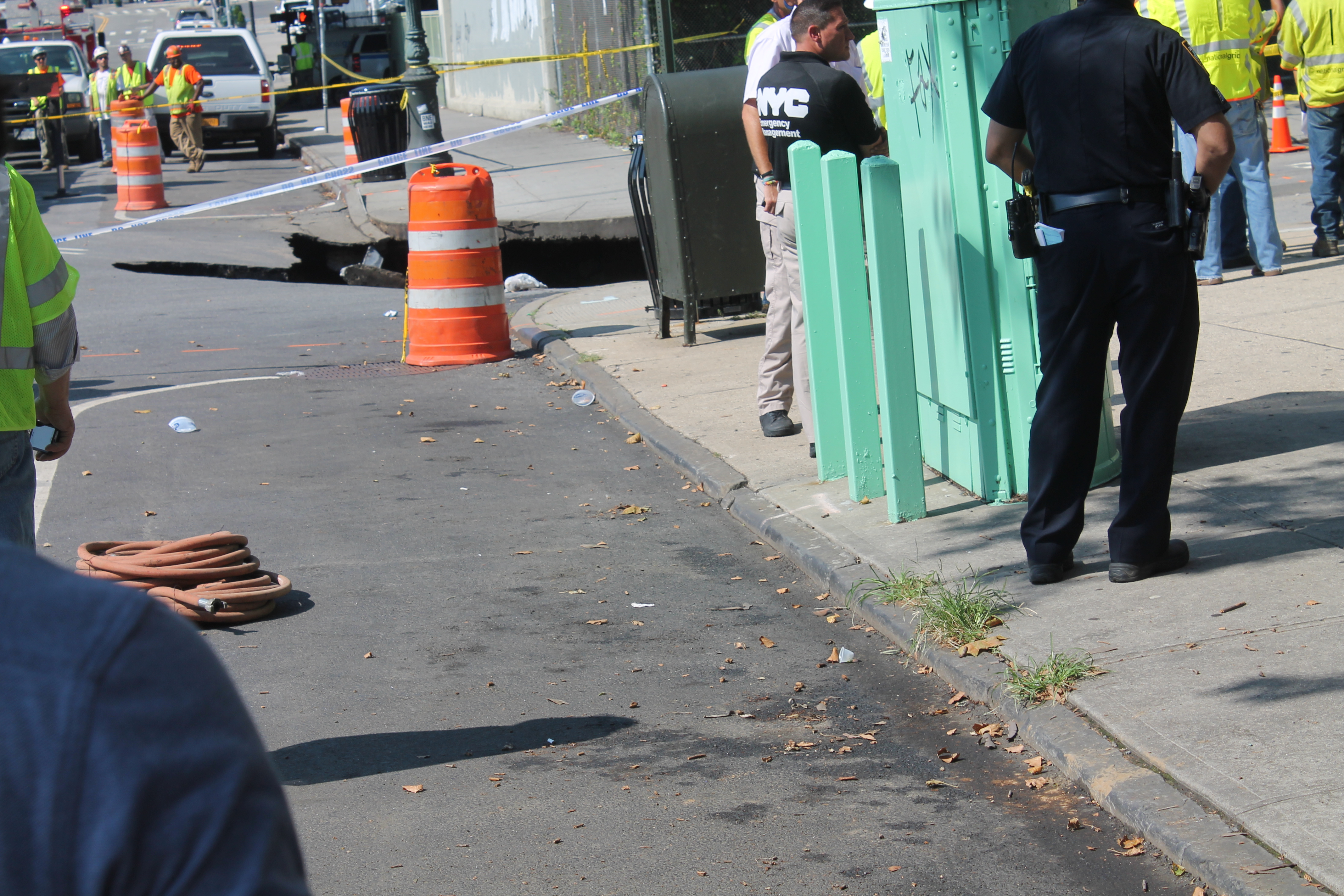 The agencies on scene – including the Department of Buildings, there to look into the structural integrity of the building closest to the sinkhole which, as of 10:30 a.m., had not been deemed an issue – are working with the utility companies which, officials say, they will likely have to shut off for the surrounding area.