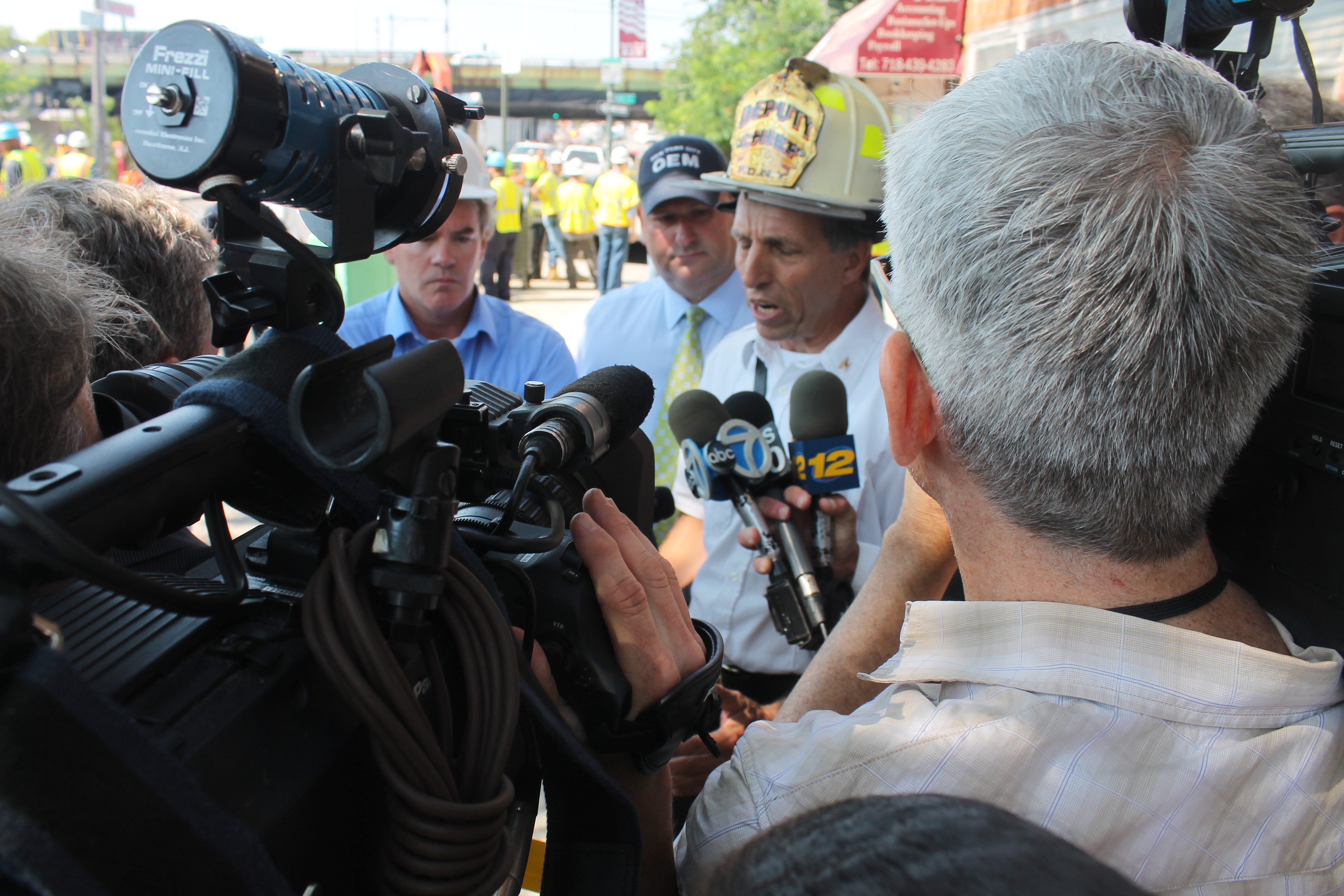 “As it stands right now, there won’t be anybody out of water until we get everything shut down,” said DEP Deputy Commissioner Jim Roberts, confirming that the incident did indeed involve a 48 inch cast iron water main that crews are in the process of shutting down. “As the chief mentioned, we are working with the utilities – including the gas companies and electric – and they’re in the process and ready to turn [everything] off. We’ll know further as we move along who, if anybody, is impacted utility-wise whether it’s electric or gas.