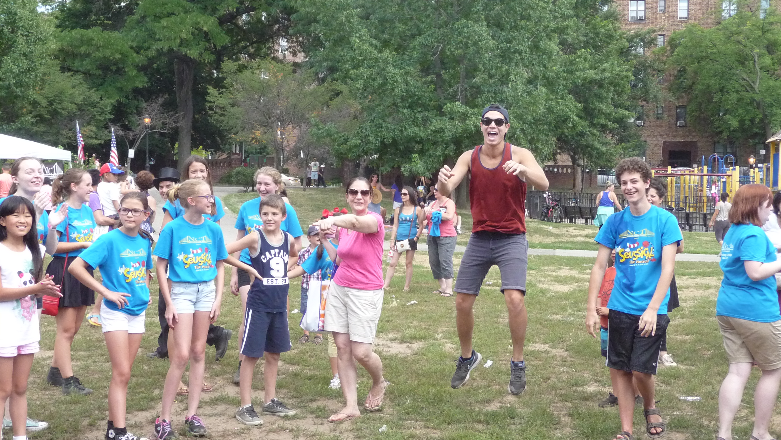 NCT, a local nonprofit community theater group which has a summer program for kids, also invited its young actors and actresses, along with their families and friends, provided them with contests and a magic show, and led them in participatory games, such as Steal the Bacon.