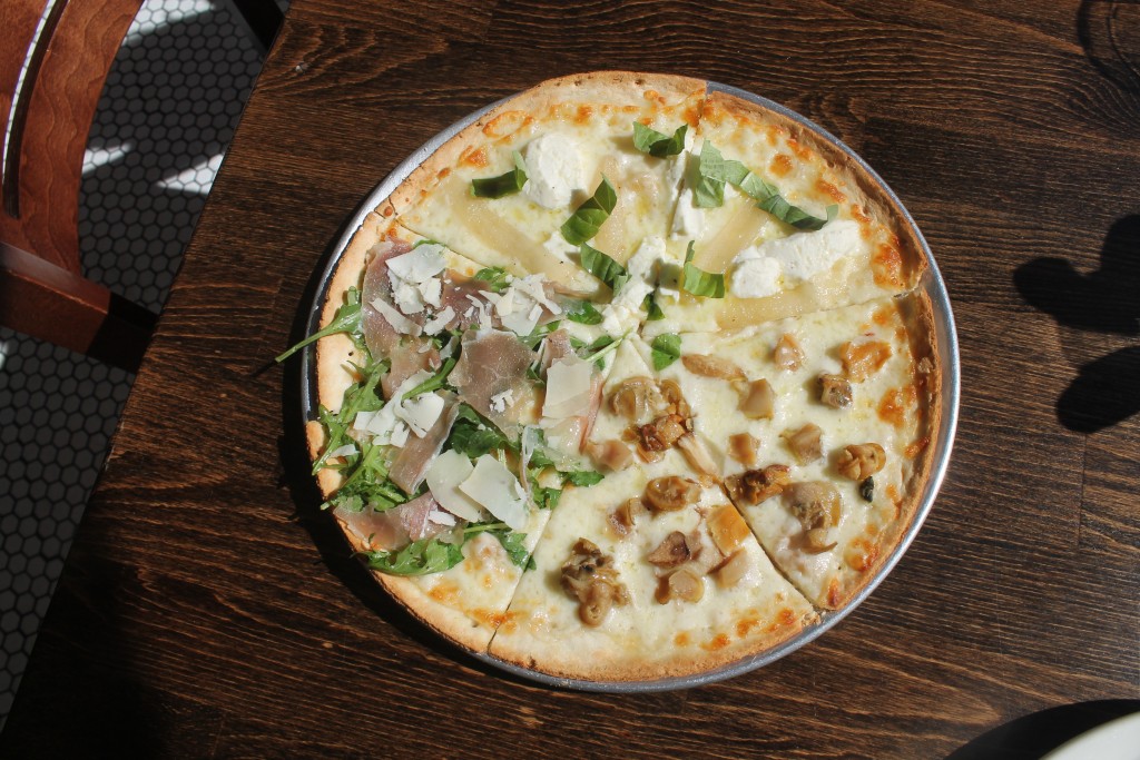 Next we sampled the Vicolo (Dominick’s personal favorite), a pie topped with fresh mozzarella and ricotta, caramelized onions, parmigiano cheese, extra virgin olive oil and fresh basil. To finish, we sampled the decadent White Clam pizza which, topped with fresh clams, garlic, parsley, parmigiano cheese, mozzarella and extra virgin olive oil, had just the right amount of flavor to hook us.