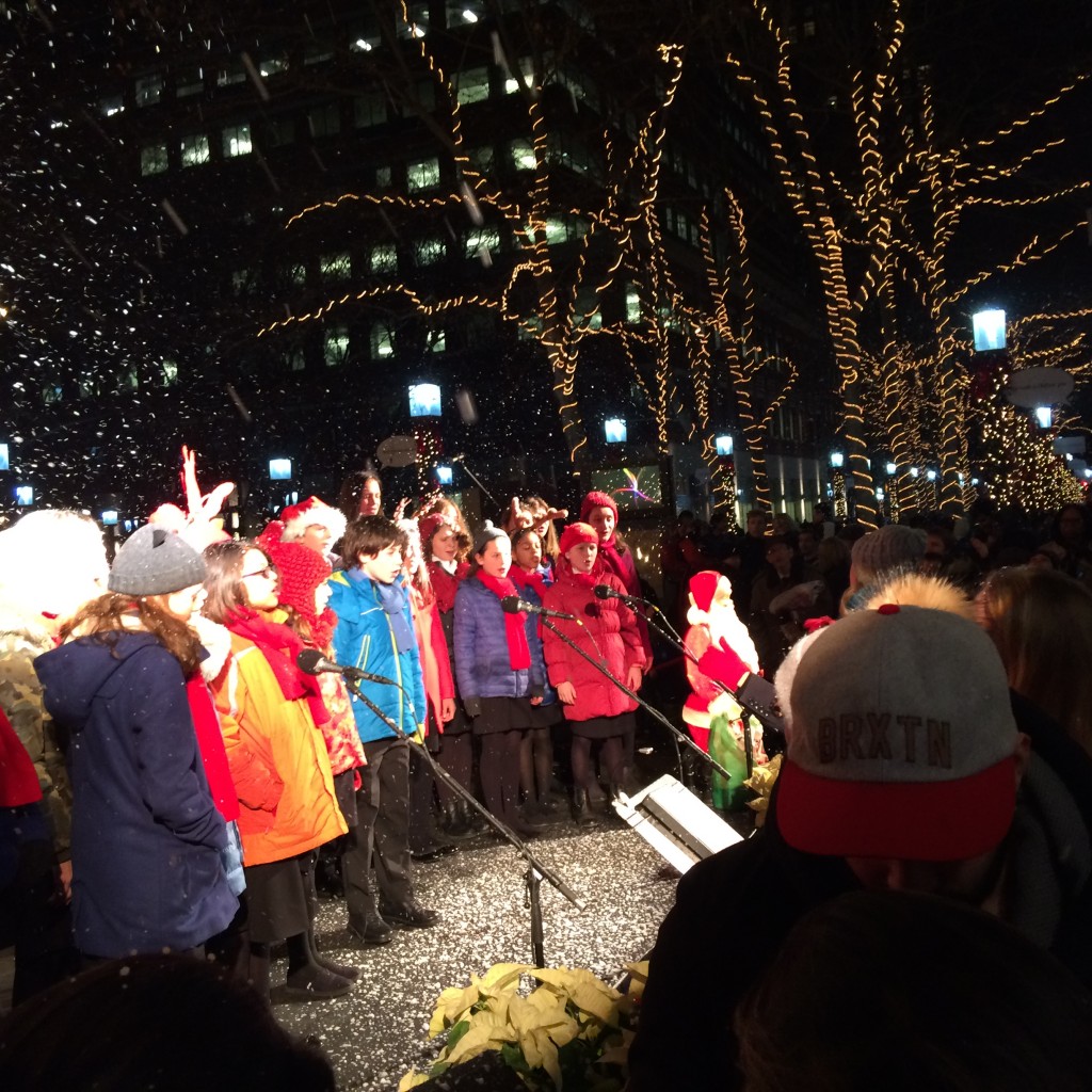 Guests were entertained by a musical performance by the Grammy award-winning Brooklyn Youth Chorus, and dance routines presented by Brooklyn-based dance center Dancewave. There was also a photo booth in front of the tree for guests to take pictures for free. Those who attended the free public event also enjoyed holiday treats provided by Starbucks and bakery and bistro, La Defense.