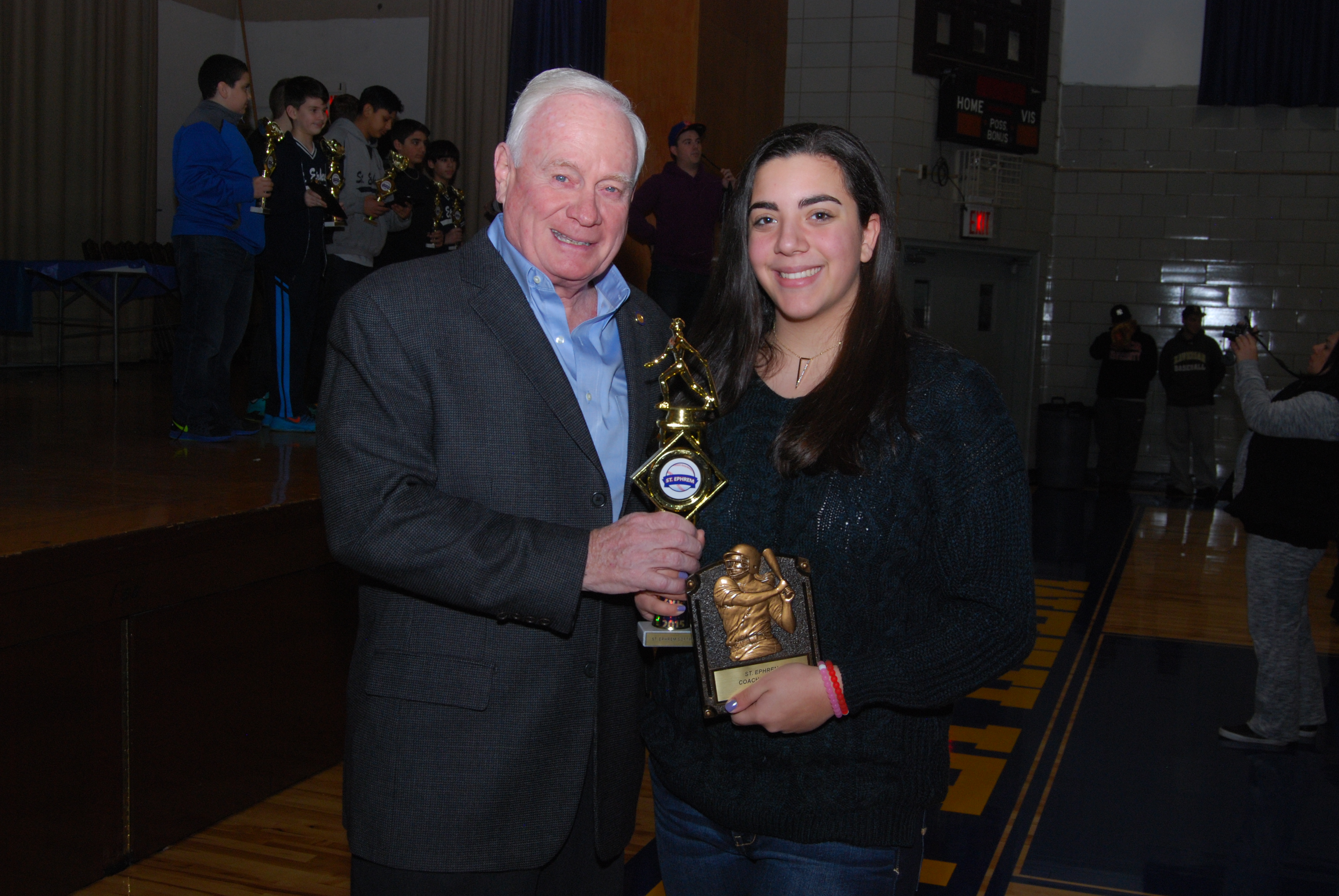 Coaches, families, elected officials and community members gathered at St. Ephrem’s new hall, now named after the retired Monsignor Peter Kain, on Sunday, January 17 to continue the tradition of the school’s baseball award ceremony.