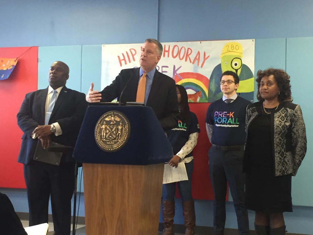 “No child should miss this opportunity,” said de Blasio. “These days, education is the whole ballgame, and kids who have been to pre-k start on first base, they start with a leg up, they have the ability to go farther than children who haven’t had that opportunity.”