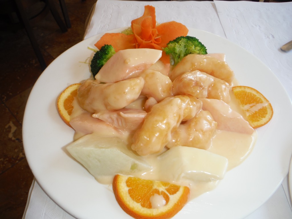 I also had the opportunity to sample several entrees including the restaurant’s showstopper signature dish, Grand Marnier Shrimp ($21.95), which features seven huge shrimp enrobed in a crispy batter crust and bathed in a sweet white orange-scented sauce, exactly like the Grand Marnier Shrimp I had at Lai Yuen during a visit several years back.