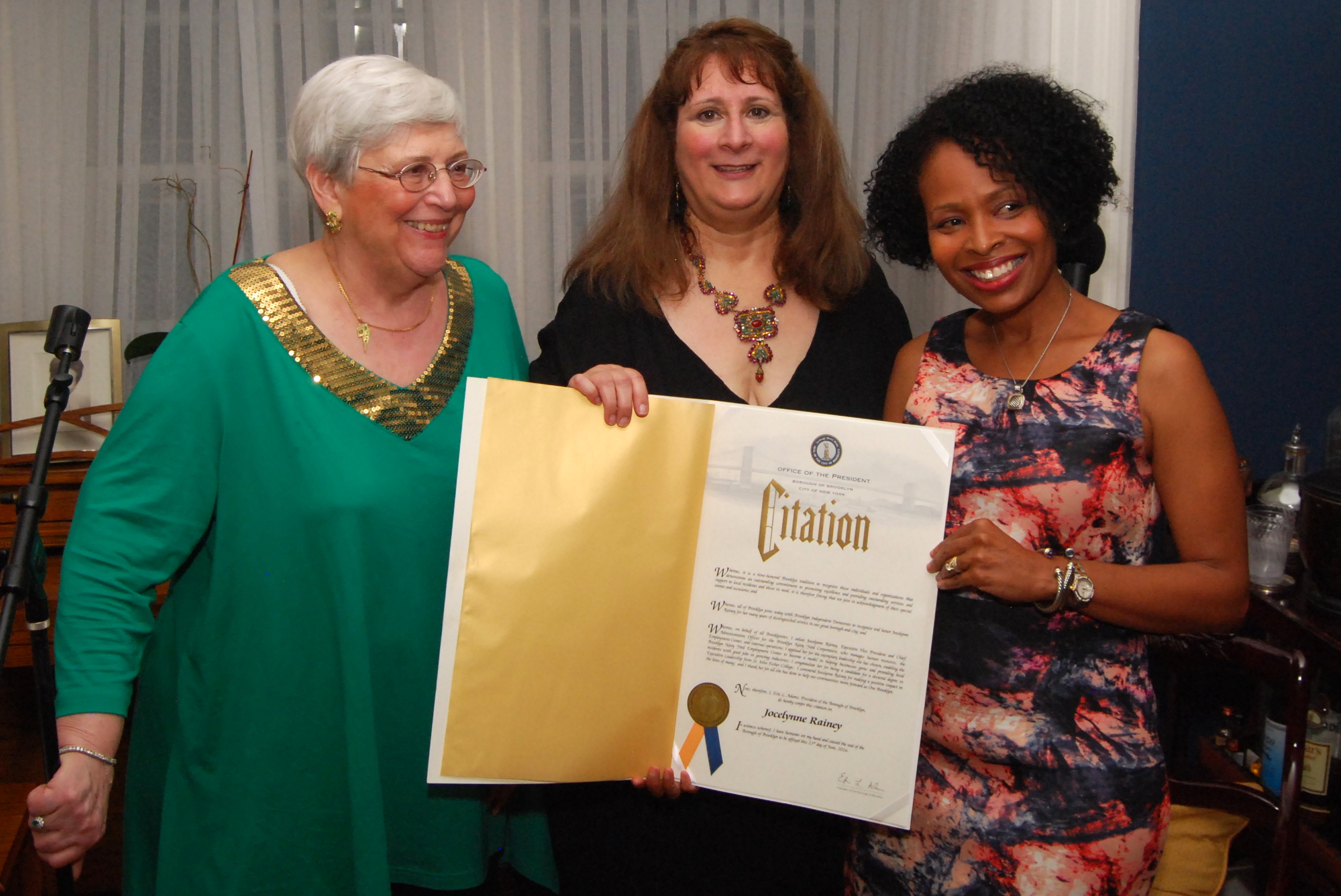 The fundraiser was held at the home of the Honorable Alice Fisher Rubin and Lowell Rubin in Democratic District Leader Lori Knipel, where attendees applauded the awardees.