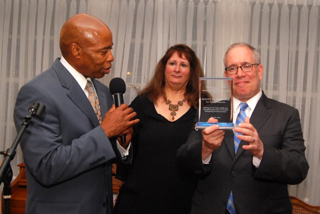 New York City Comptroller Scott Stringer and Gregory Cerchione Esq., past president of the Brooklyn Bar Association, both received awards that night. Joseph Douek, a member of the City Planning Commission, and Jocelyne Rainey, executive vice president and chief administrative officer of Brooklyn Navy Yard, were also presented with awards.