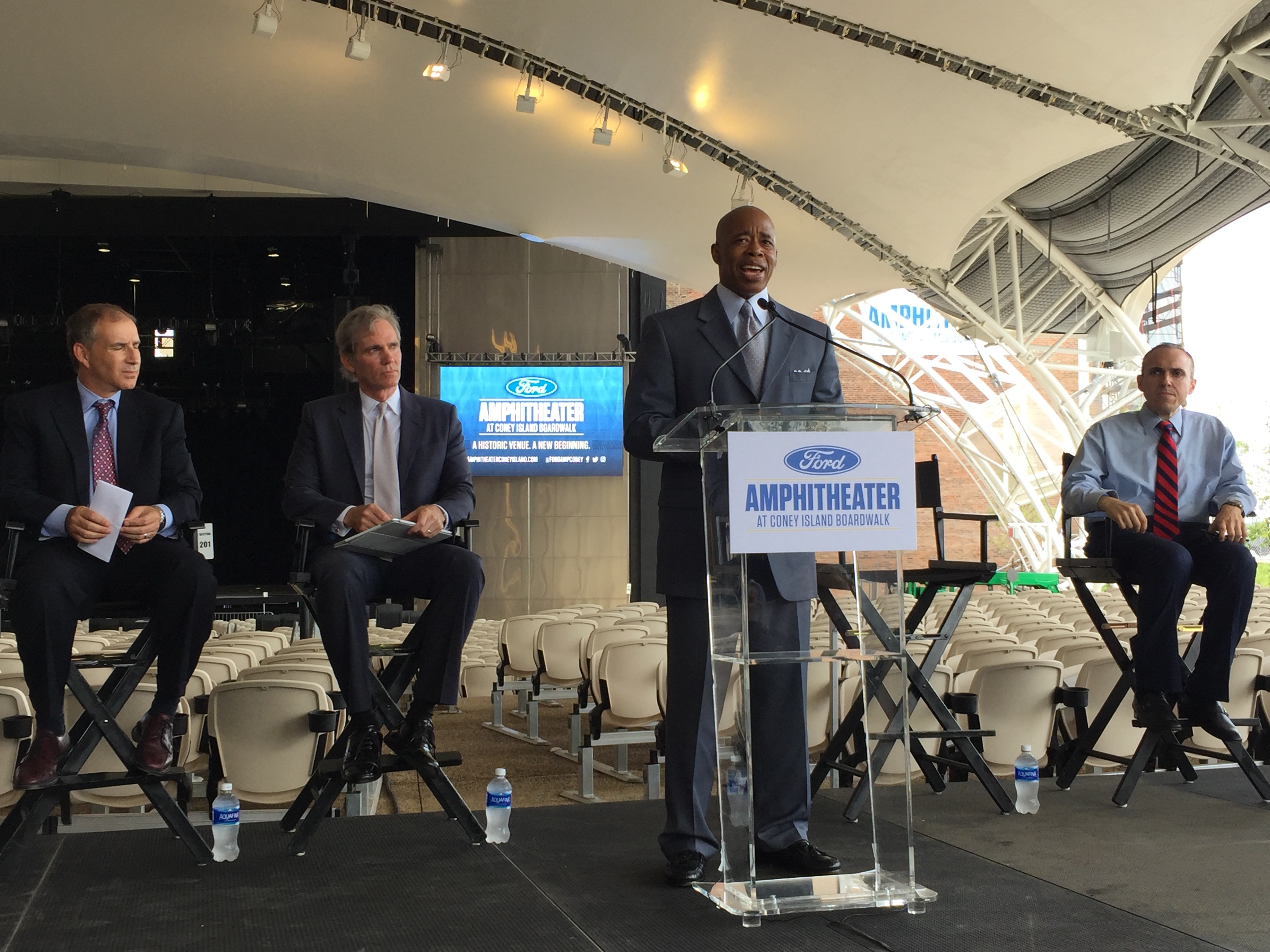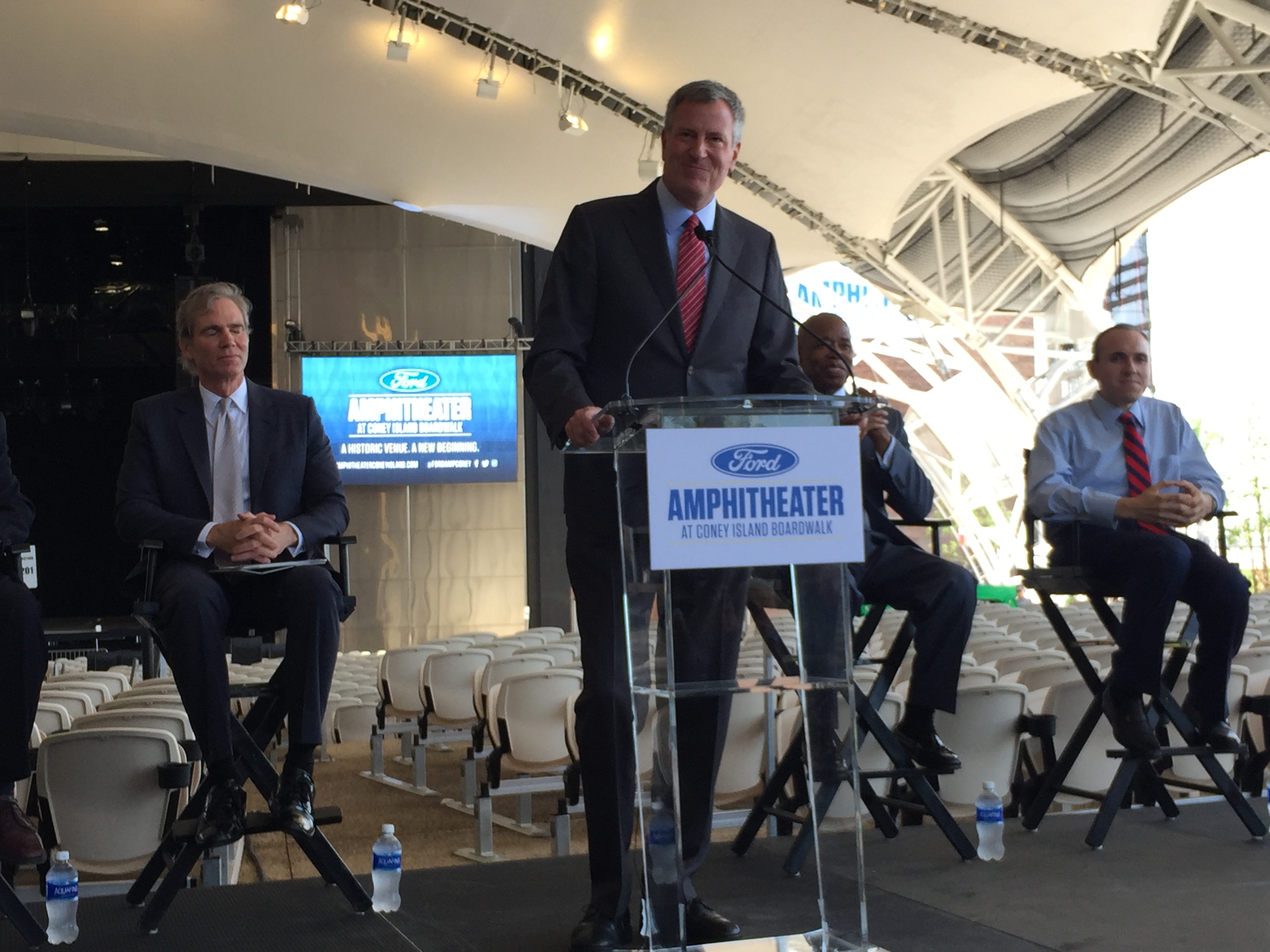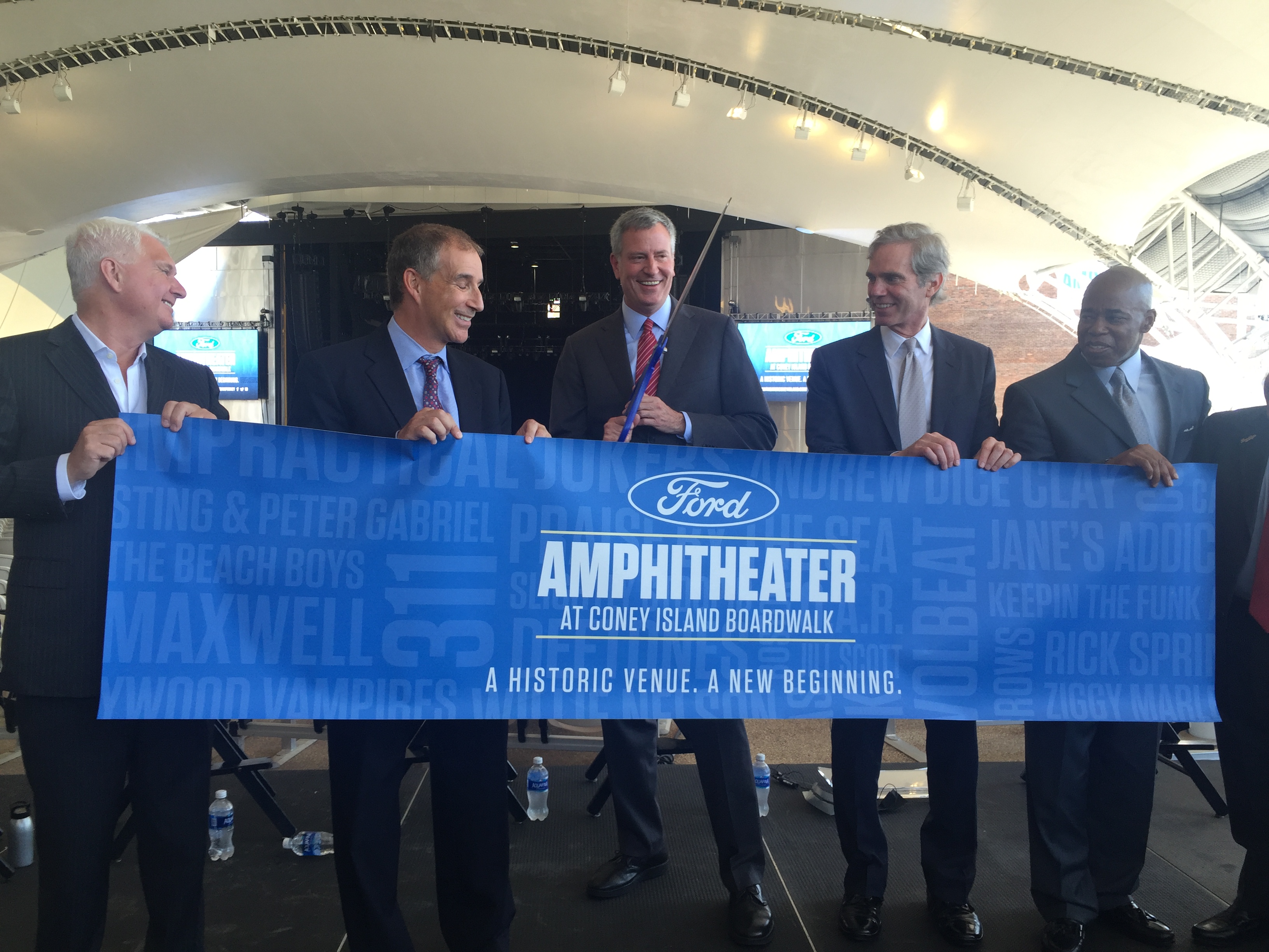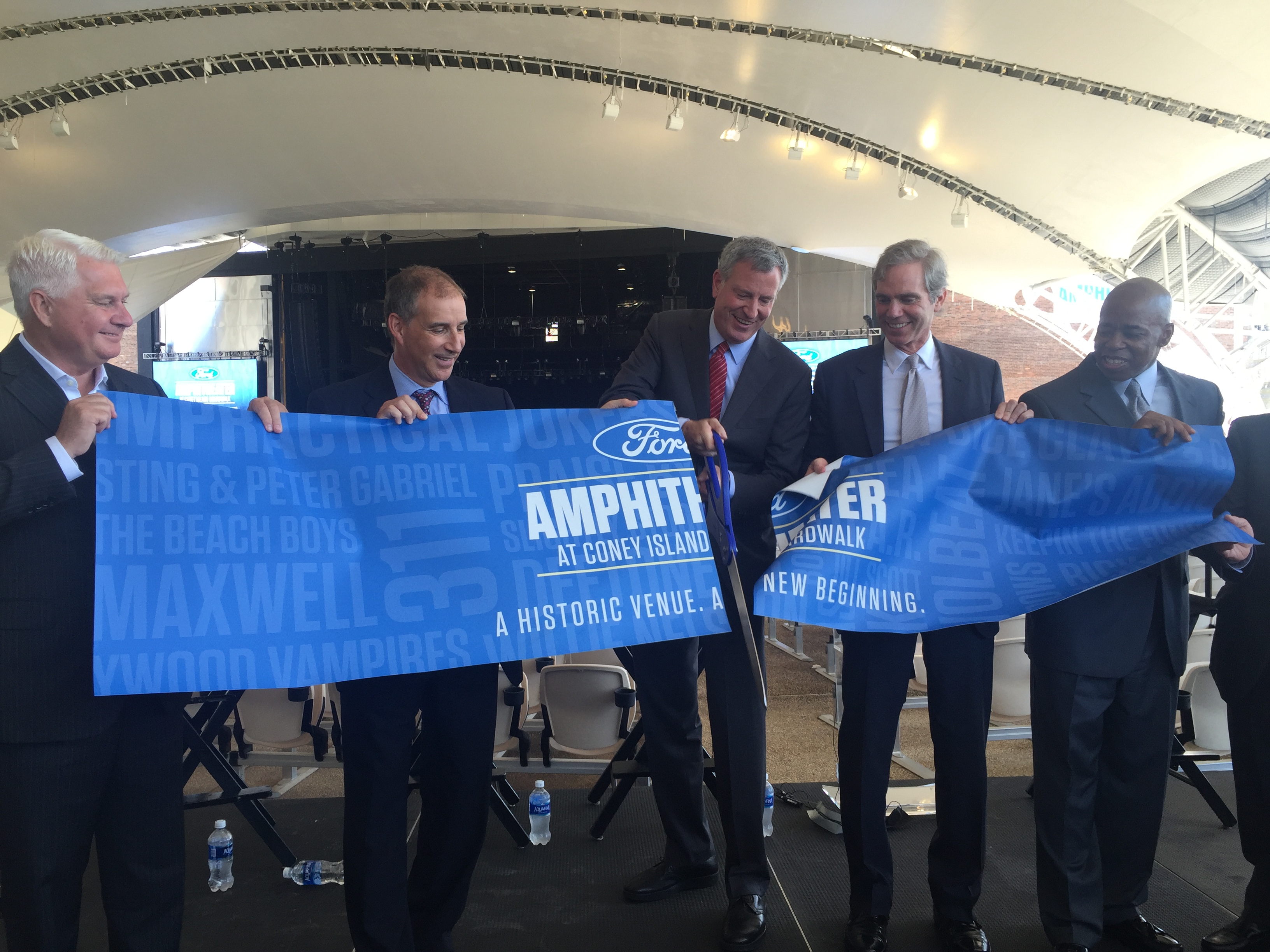“I’m very proud to officially open this amphitheater,” said Mayor Bill de Blasio. “I’m thrilled to hear that the music industry is reacting with such energy to this location, because this location has it all. How many venues can boast of such a beautiful view of the Atlantic Ocean and open air and the legend of Coney Island? This is going to be one of the special places in New York City and it proves that the greatest city in the world can keep getting greater.”