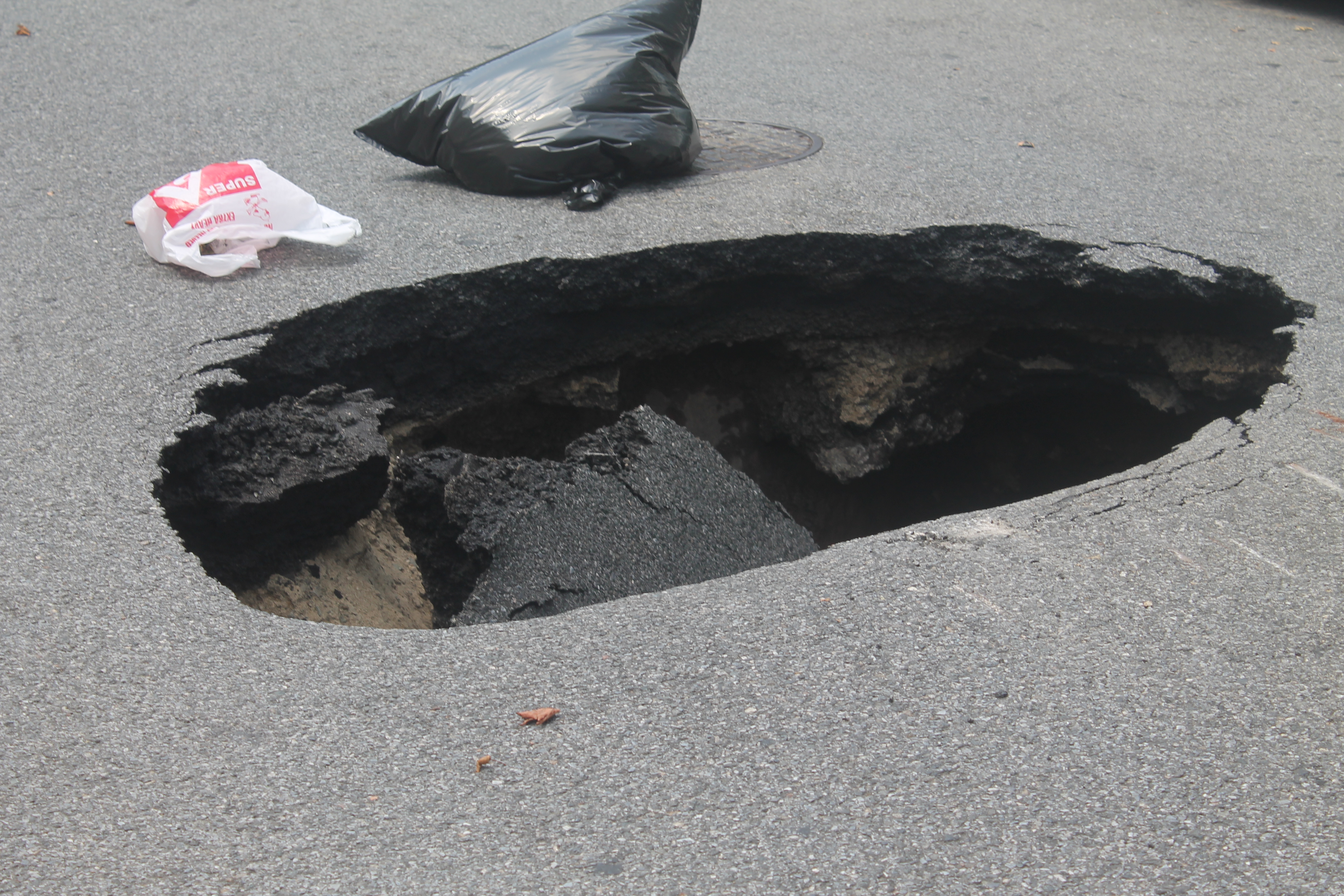 The second sinkhole in less than a week has most of the block concerned. “I’m afraid to drive here,” added another local, Christine F. “I am scared this keeps happening. It’s happening all over Bay Ridge. I remember the big one on Fifth Avenue [in Sunset Park, that’s still under repair]. What if someone was walking their dog and the dog ran over there? We suspected something like this would happen.”