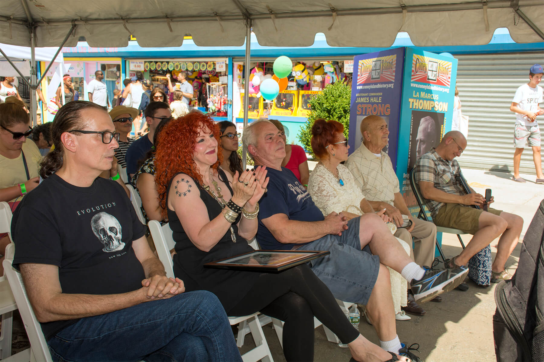 Curious Brooklynites and history buffs alike were invited to join the Coney Island History Project’s sixth annual History Day Celebration at Deno’s Wonder Wheel Park on Sunday, August 7. The free event featured the 2016 Coney Island Hall of Fame induction ceremony at the Dreamland Plaza Stage (West 12th Street at the Boardwalk). Visitors were also able to enjoy banners and kiosks that celebrate Coney Island history, as well as a poetry-making station led by poet Amanda Deutch.