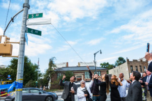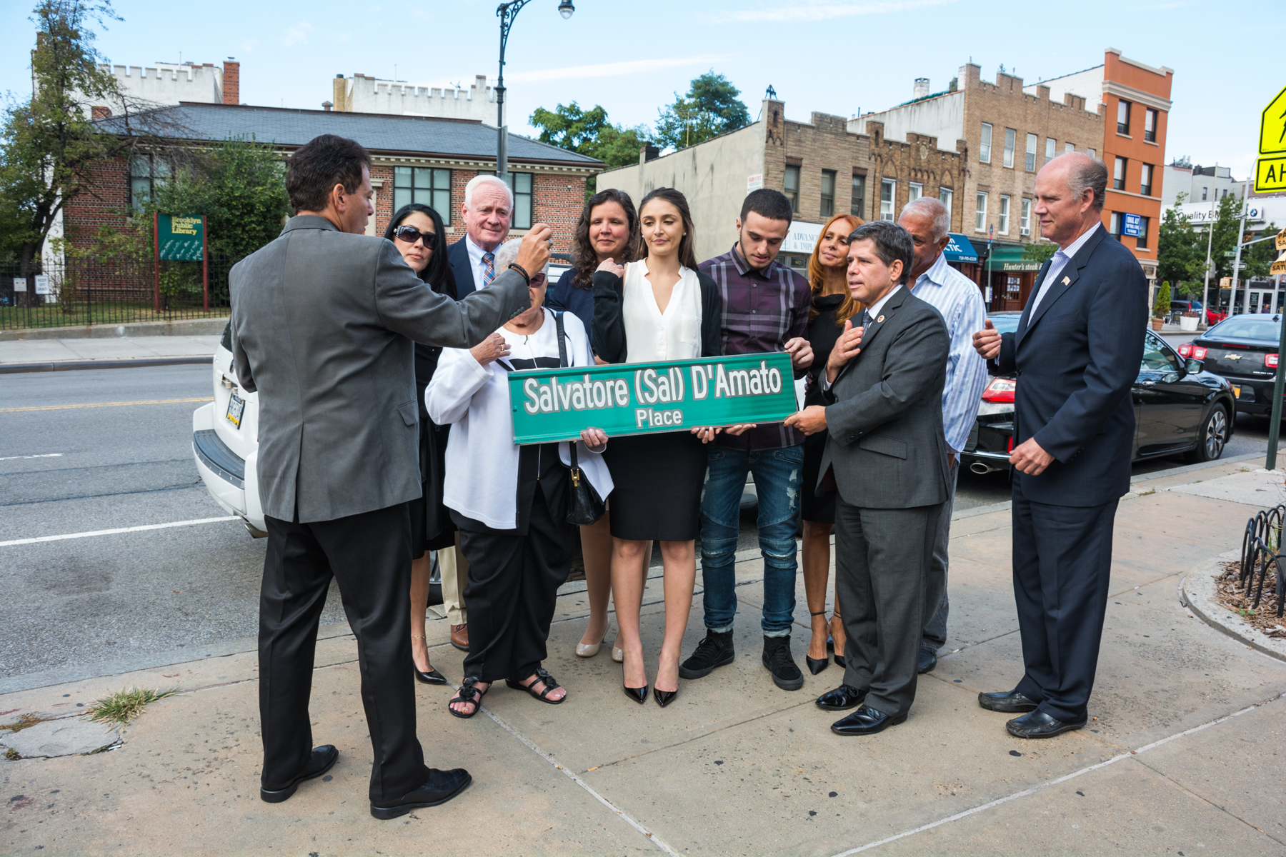 Elected officials, local residents and members of the D’Amato family gathered at the corner of 95th Street and Fifth Avenue starting at 11 a.m. to mark the official co-naming of the corner as “Salvatore D’Amato Place.”
