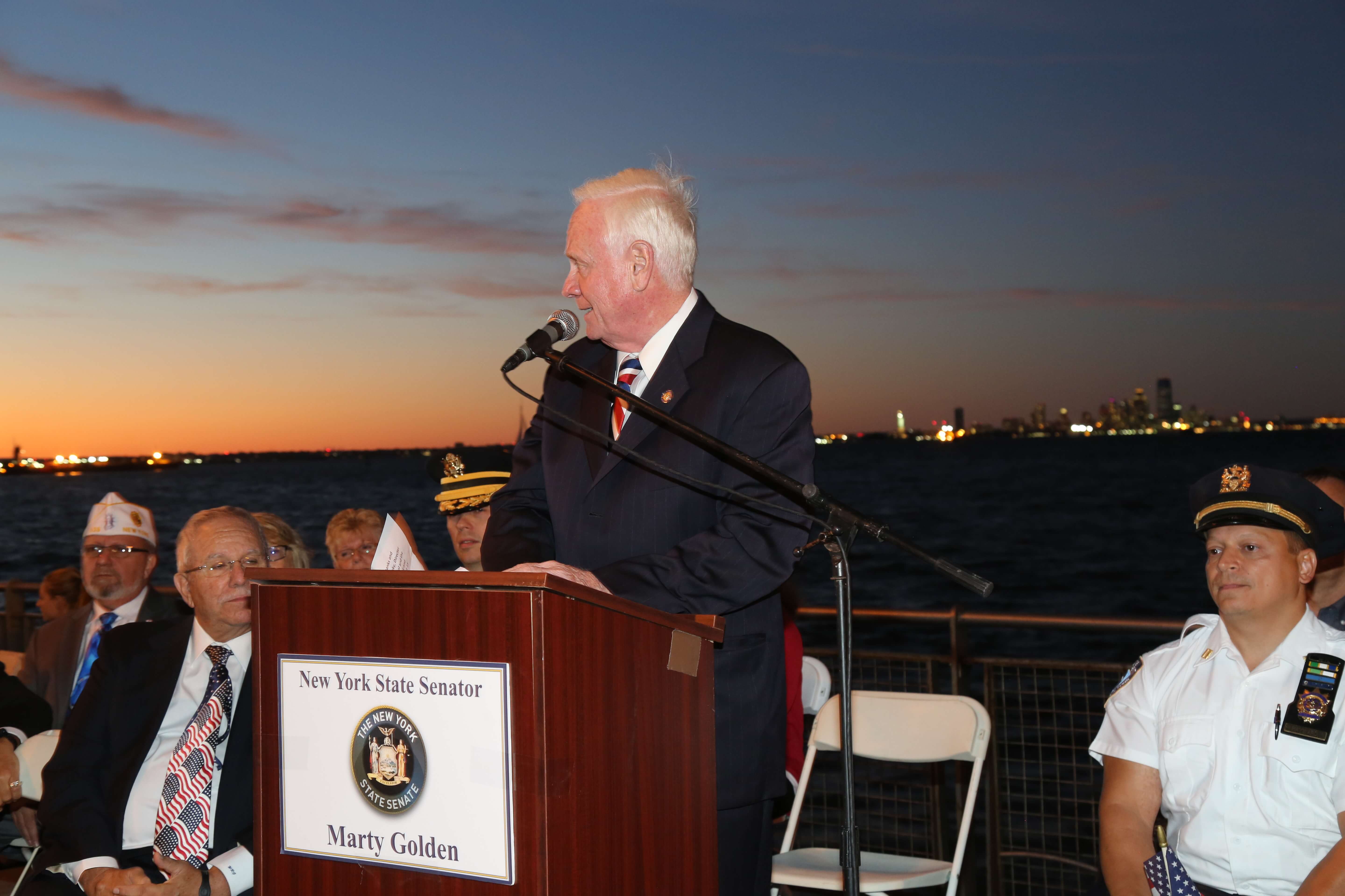 Families of fallen heroes, local residents, elected officials from both sides of the aisle, veterans from across the state and more gathered at the American Veterans Memorial Pier at 69th Street on Sunday, September 11 to join State Senator Marty Golden as he presented the 15th Annual September 11 Memorial.