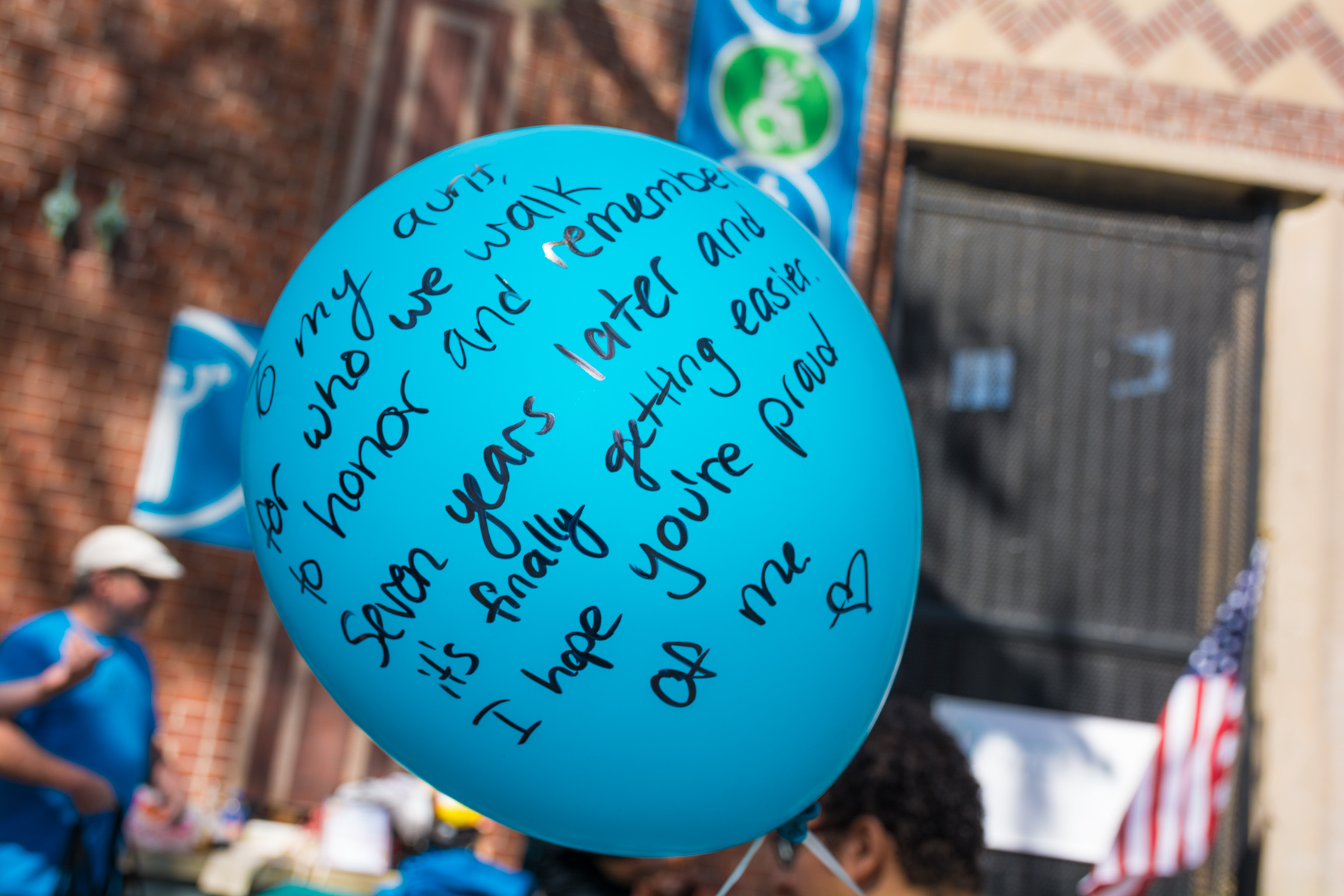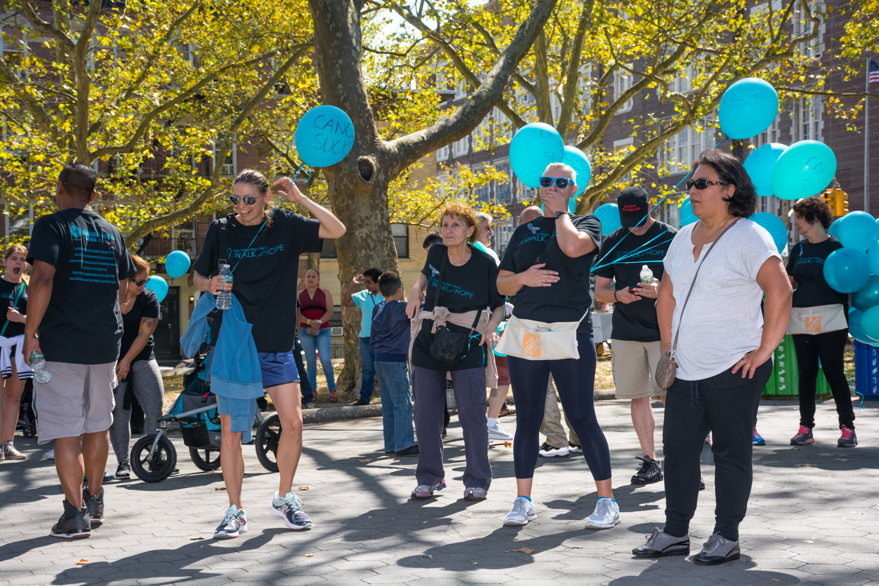 The group walks around Sunset Park and conducts a balloon ceremony. “Each balloon is biodegradable and is dedicated in honor of someone who has cancer,” Henry said. “Each person writes a message to someone close to them. We took them to the hill overlooking the Manhattan skyline.”