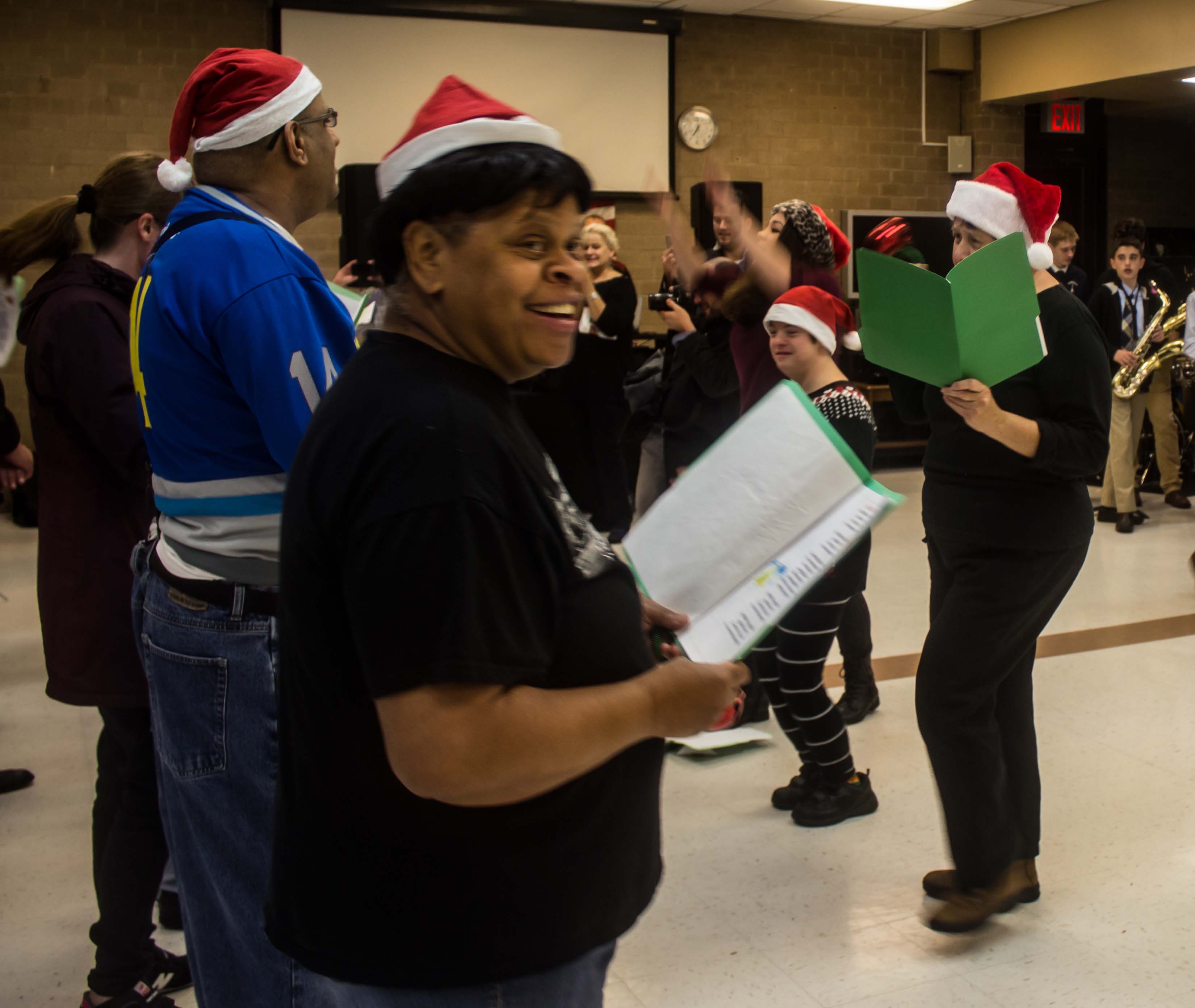 Due to inclement weather, the lighting’s usual performances by the Guild for Exceptional Children and the Xaverian High School Band were moved across the street from the gazebo to inside of Shore Hill (9000 Shore Road).