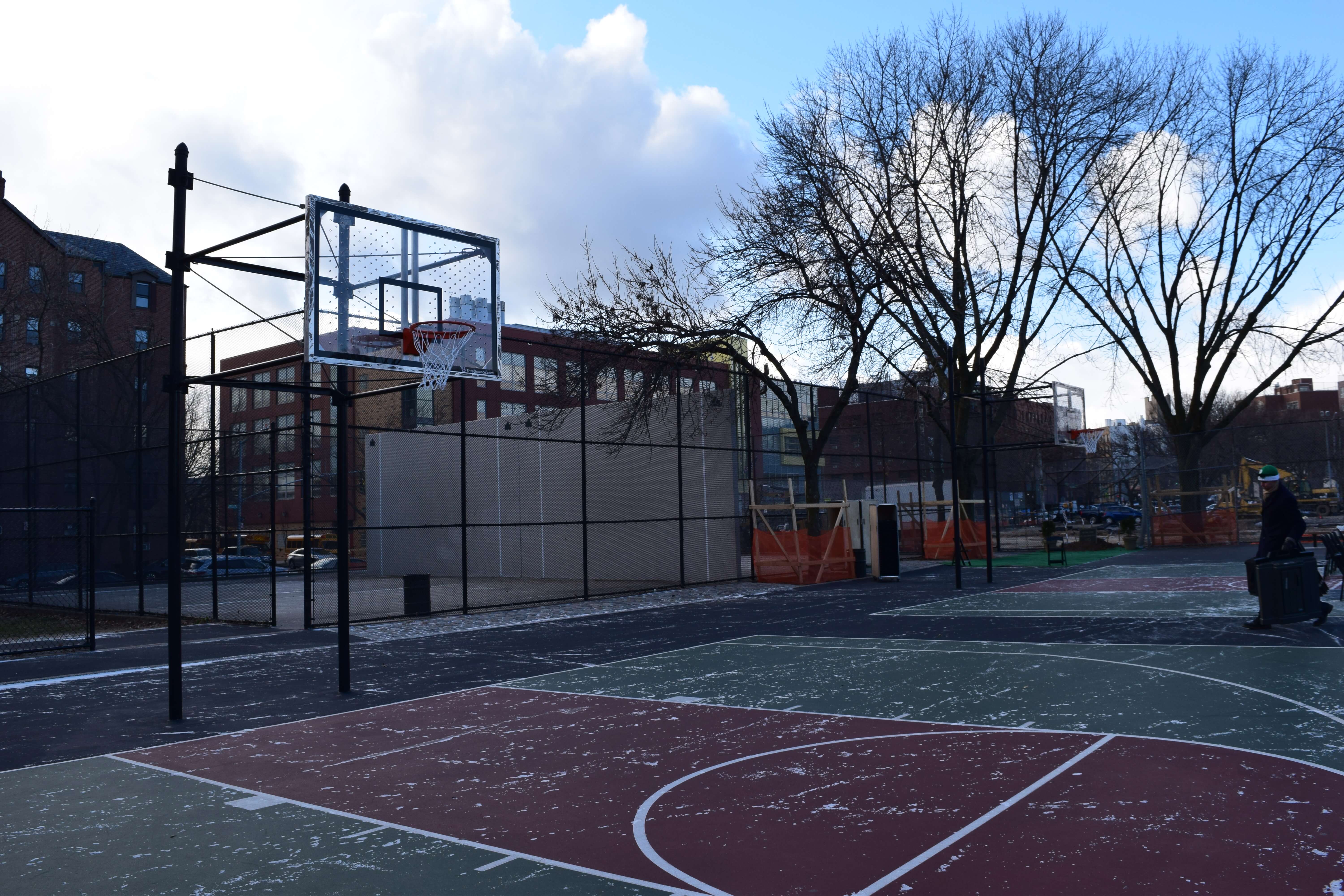 The newly-renovated park features a new basketball court and a new handball court rebuilt from scratch. The basketball courts were finished with new color seal coat, lines and benches. New benches were also installed along the repaved paths within the park. In addition, there are new drinking fountains and landscaping.