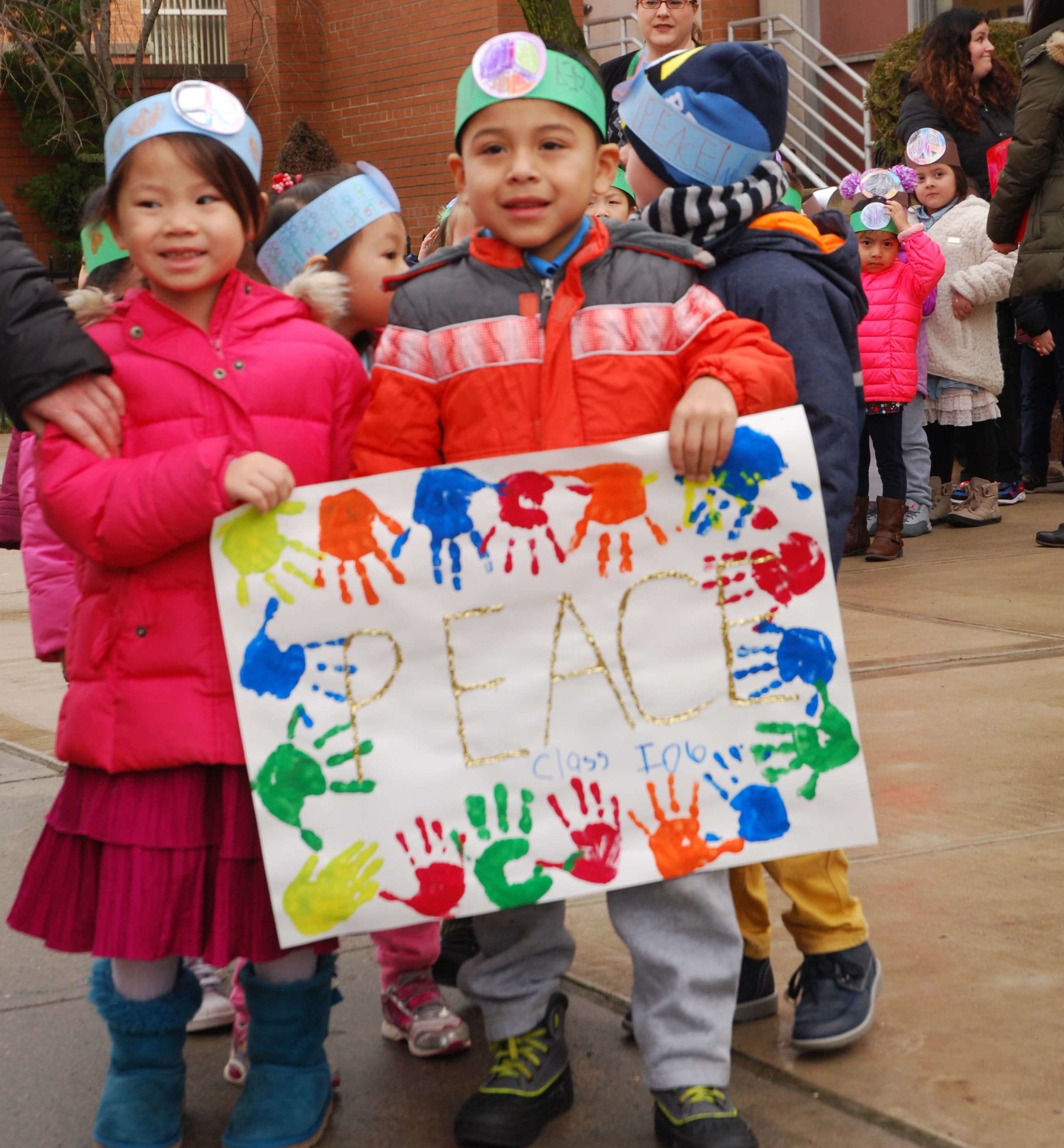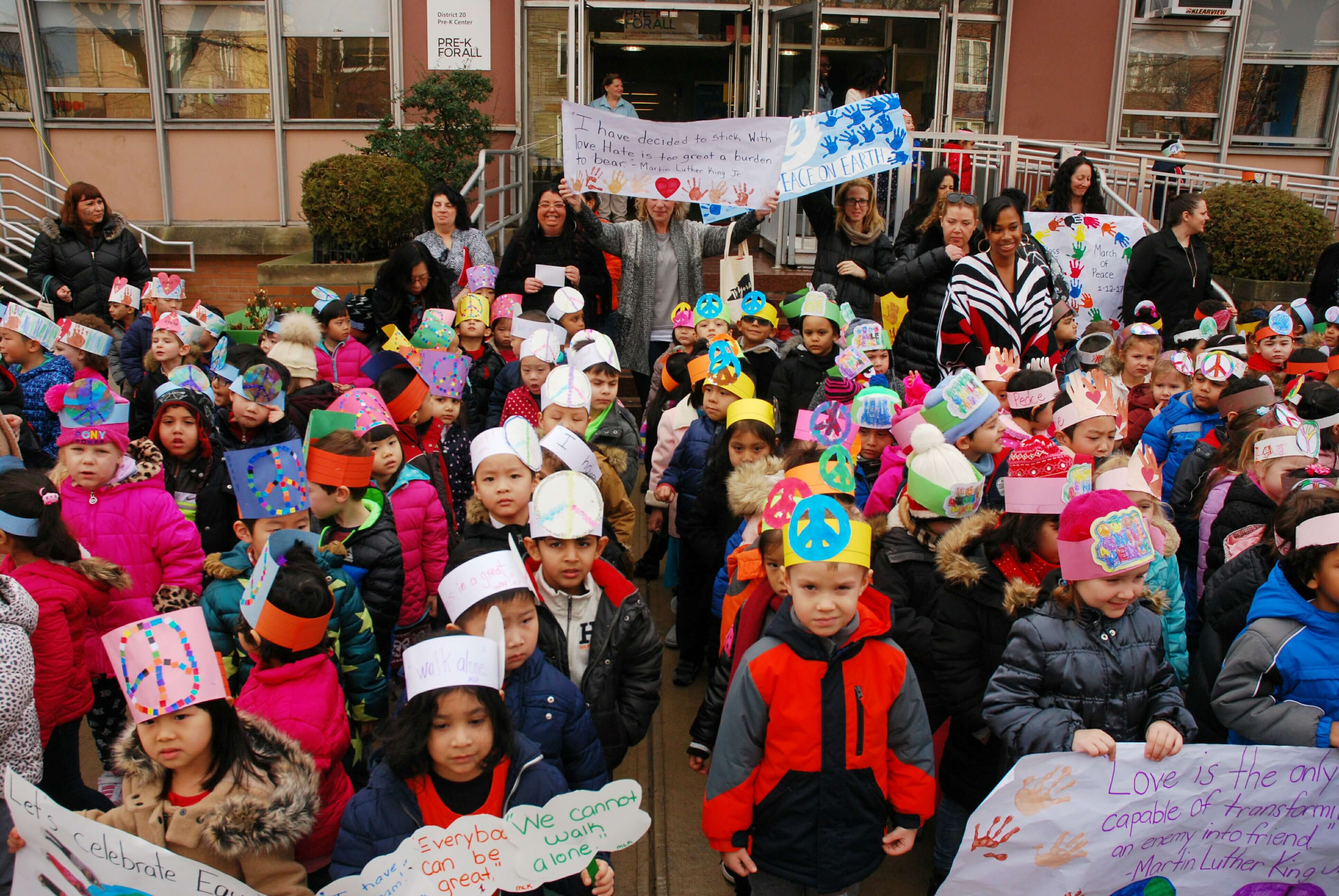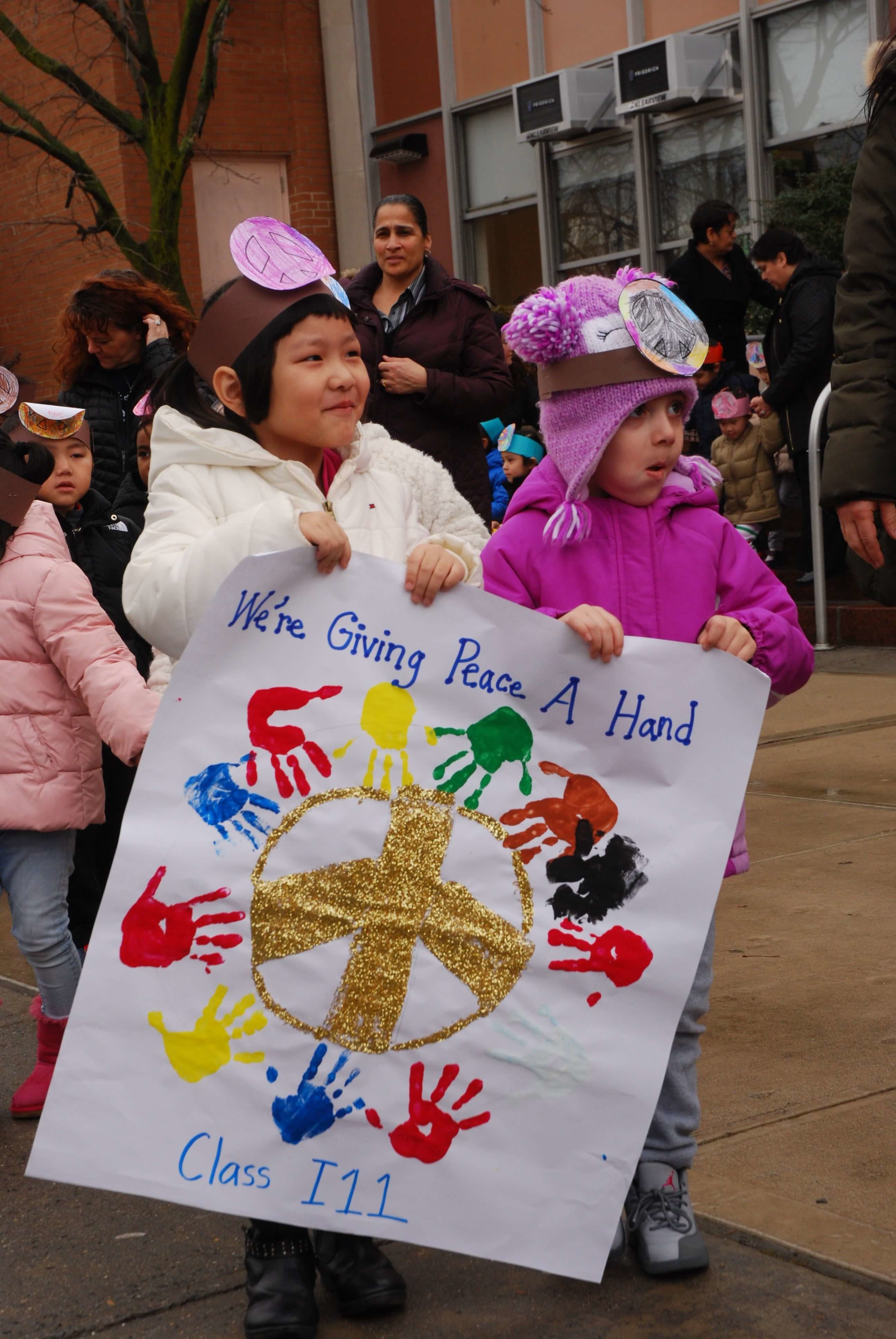 “Our Pre-K students were so excited for their March of Peace in honor of Dr. Martin Luther King, Jr,” said Lauren Napolitano, assistant principal at the Pre-K for All Center. “Dr. King said many things, among them, ‘Intelligence plus character-that is the goal of true education.’ Here at our Pre-K center, we pride ourselves on character building and teaching the children, our future leaders, how to work together and respect one another. In that spirit, when we made our plans to celebrate Dr. King’s legacy, our focus was to plant seeds to teach our children acceptance and cultural harmony.”