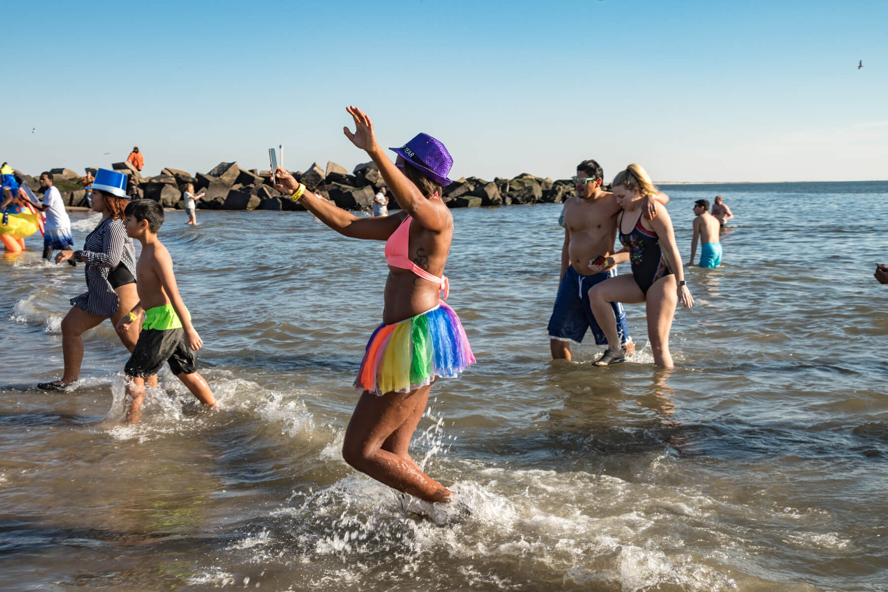 Ryan was glad that the weather cooperated. “This year, we were fortunate enough to have such beautiful weather. It created the kind of vibe you’d see on the Fourth of July,” she added. “Everyone seemed so happy and hopeful for a great new year with swimmers and spectators alike eating, drinking and dancing on the Boardwalk. It was impossible not to soak in the joy of the day. “