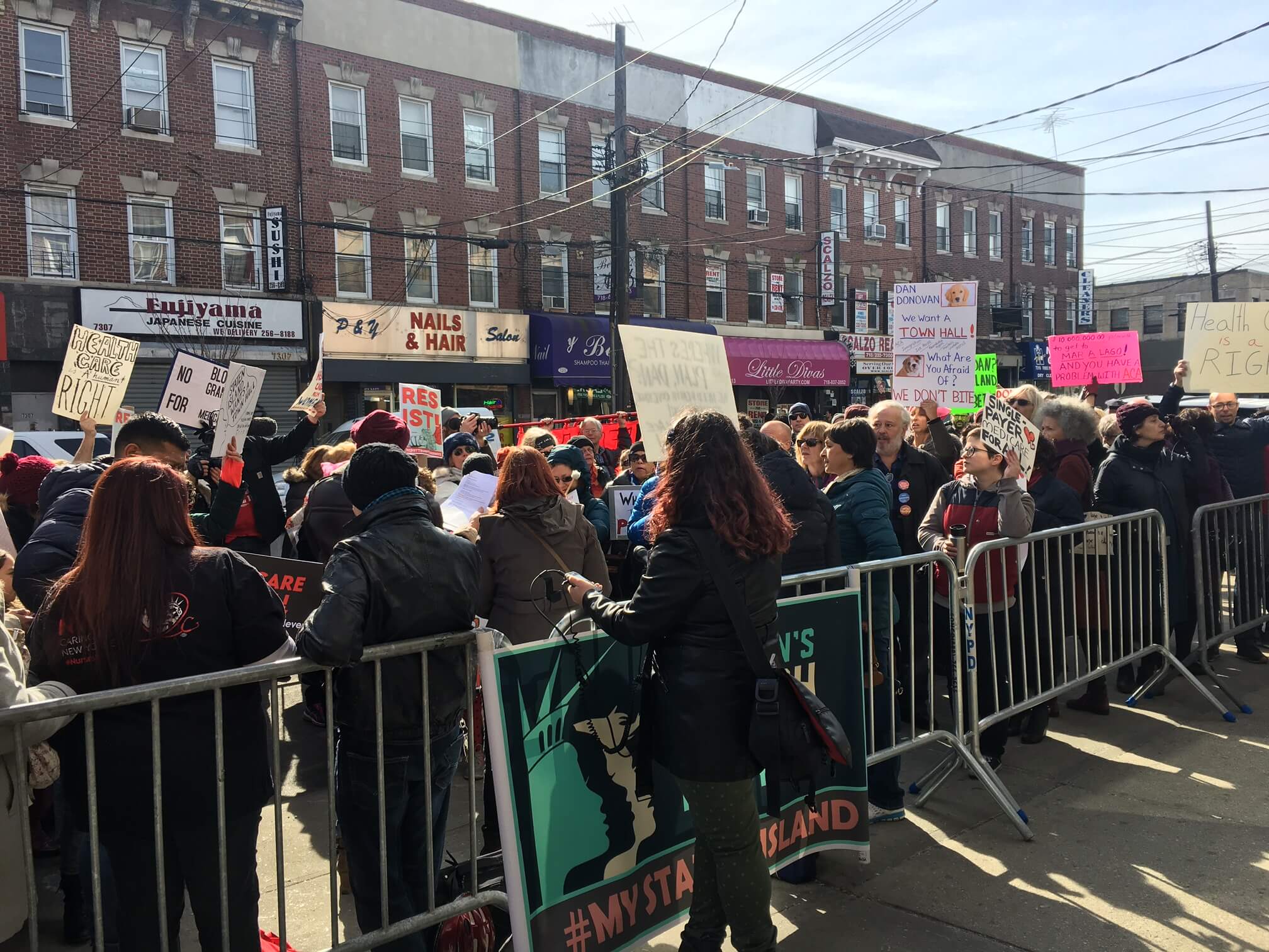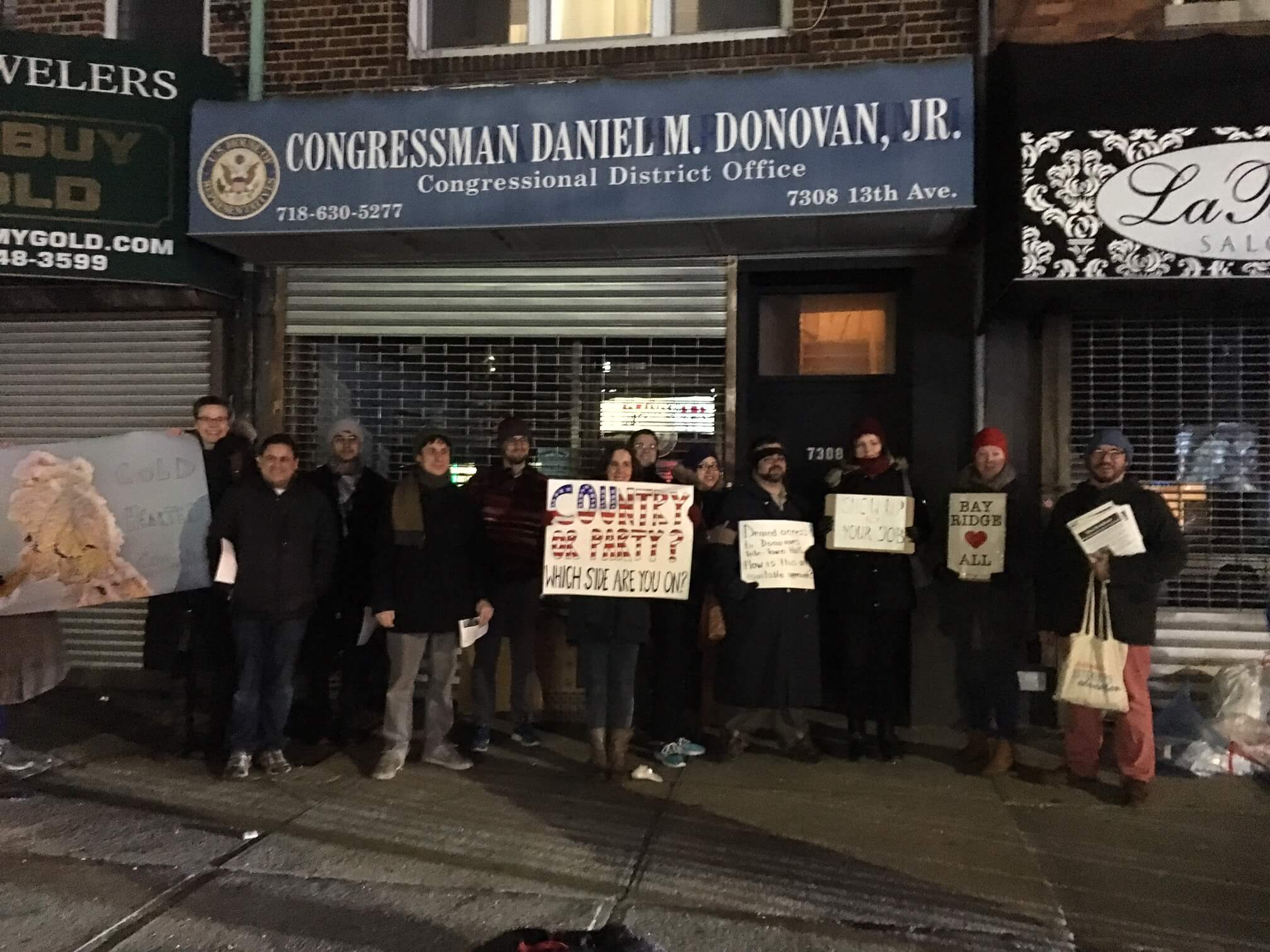 That was the message at not one, but two protests held just four days apart outside Congressmember Dan Donovan’s Dyker Heights district office, 7308 13th Avenue.