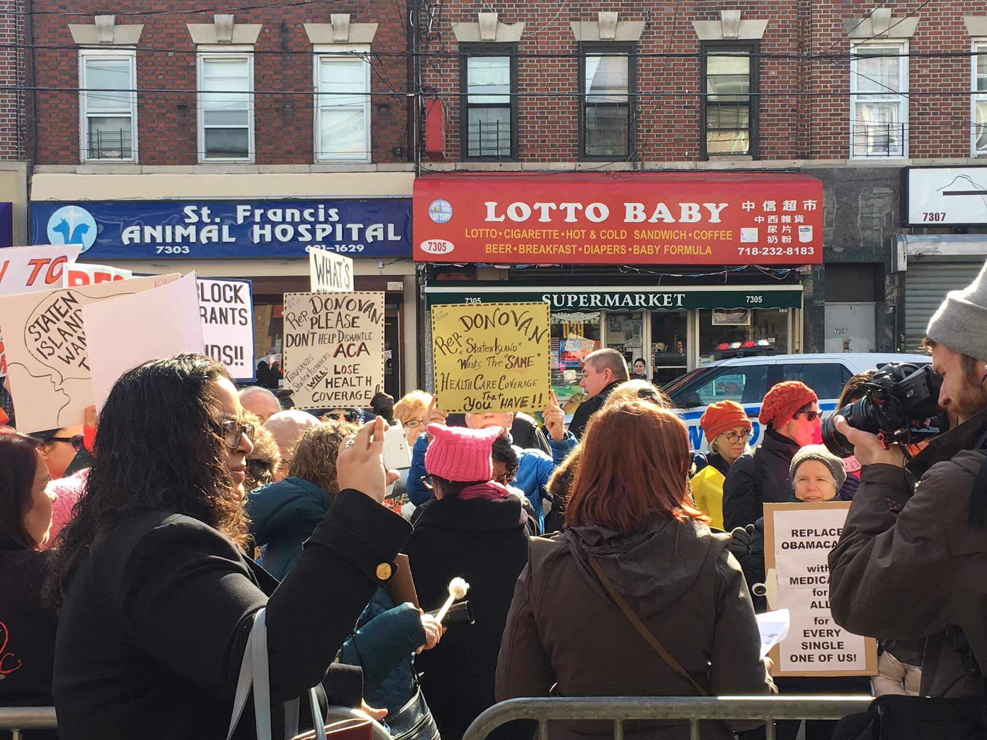 The second, held on Tuesday morning, February 21, saw more than 200 people outside Donovan’s office, this time with a more specific agenda: protecting the Affordable Care Act (ACA).