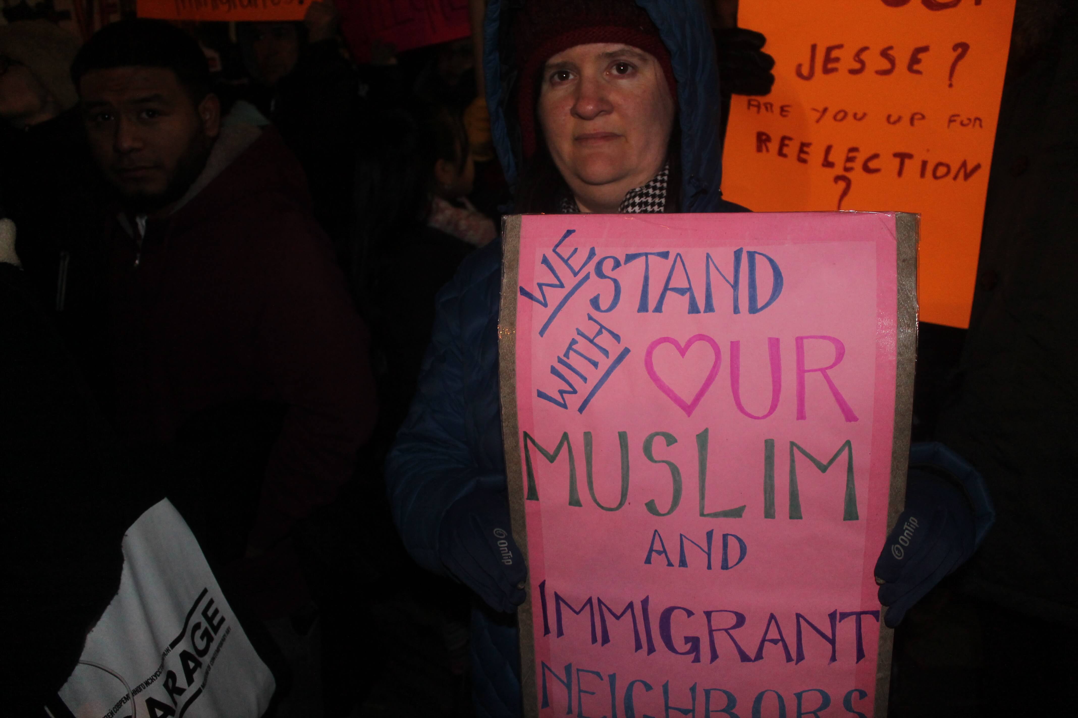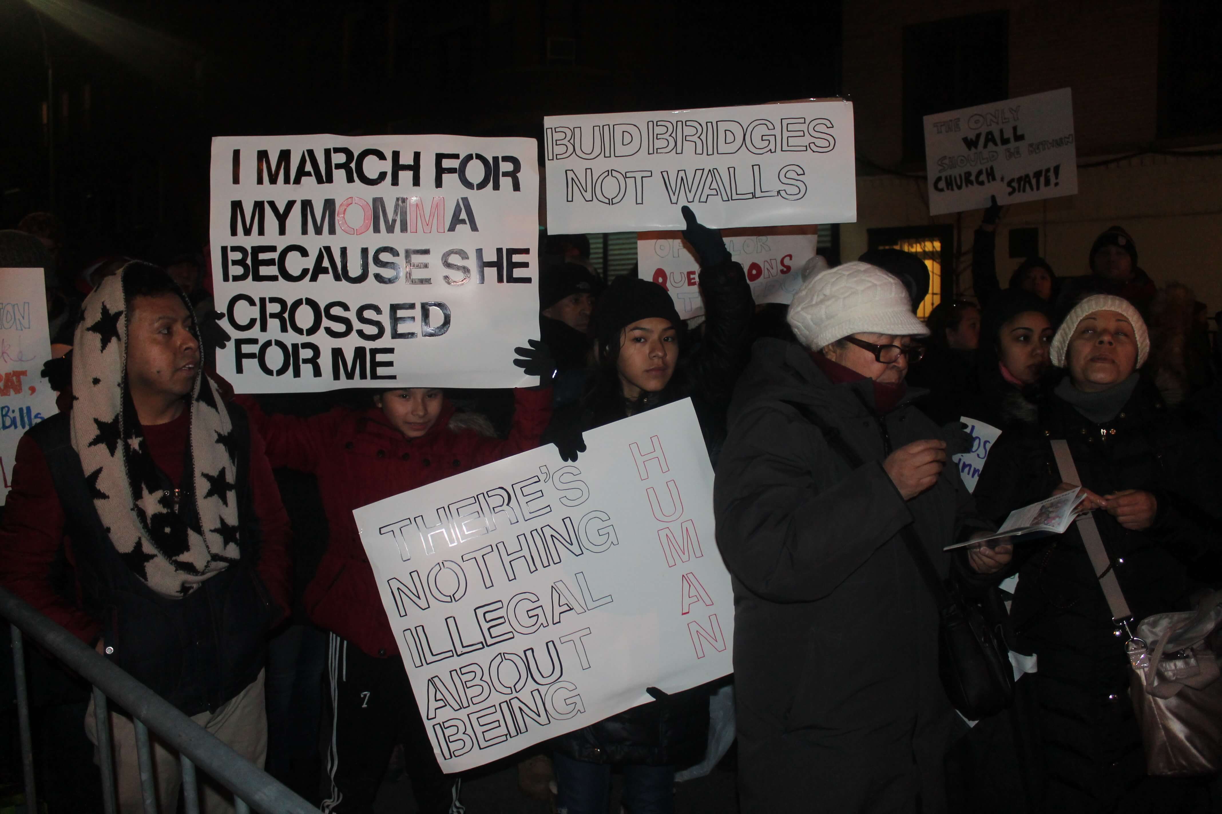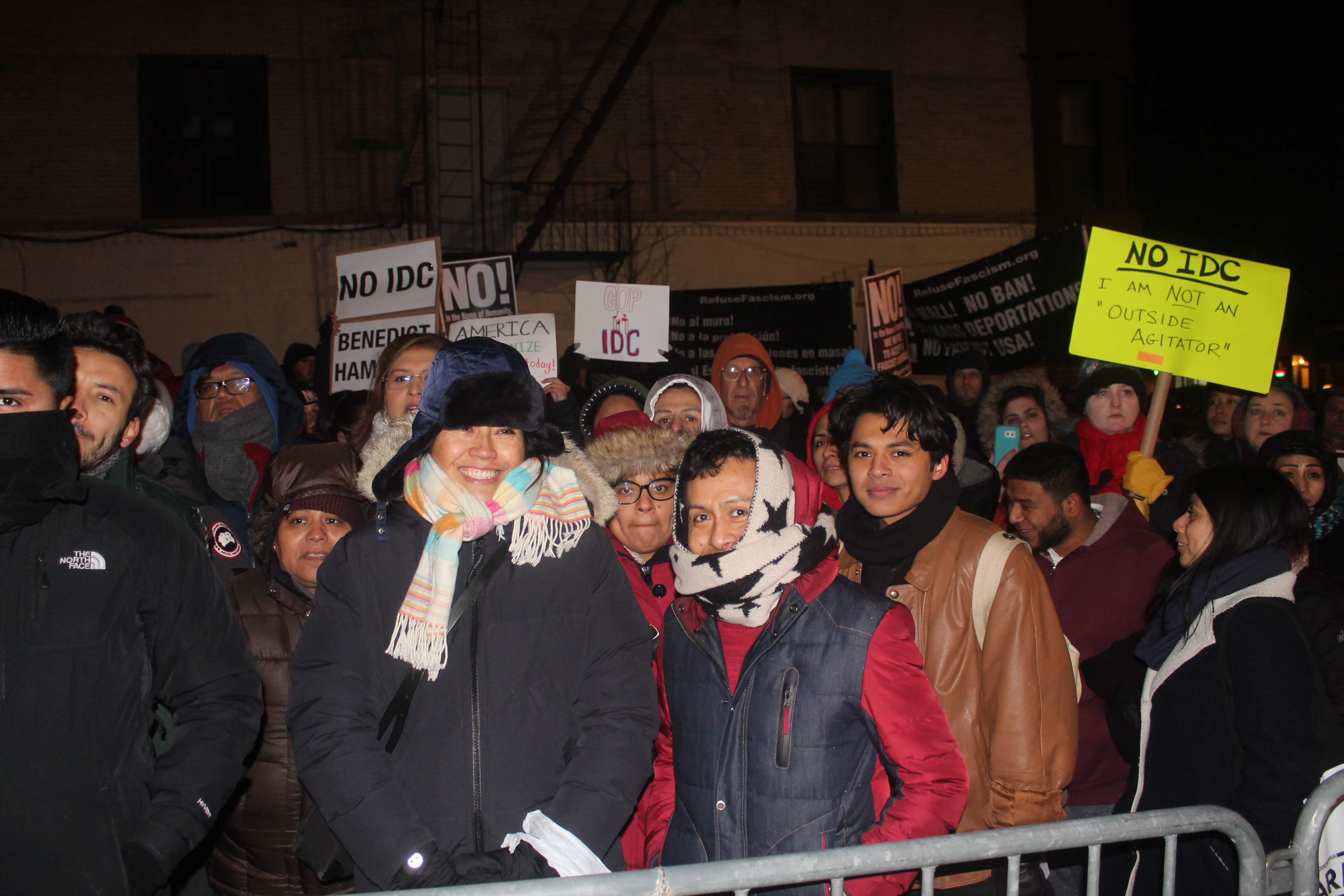 It was a tale of two rallies outside Community Board 7 in Sunset Park as a large group of protesters stood outside the building in frigid temperatures on Thursday, February 16 to decry State Senator Jesse Hamilton’s decision to caucus with Republicans through the Independent Democratic Conference (IDC) and President Donald Trump’s stance on deporting immigrants.