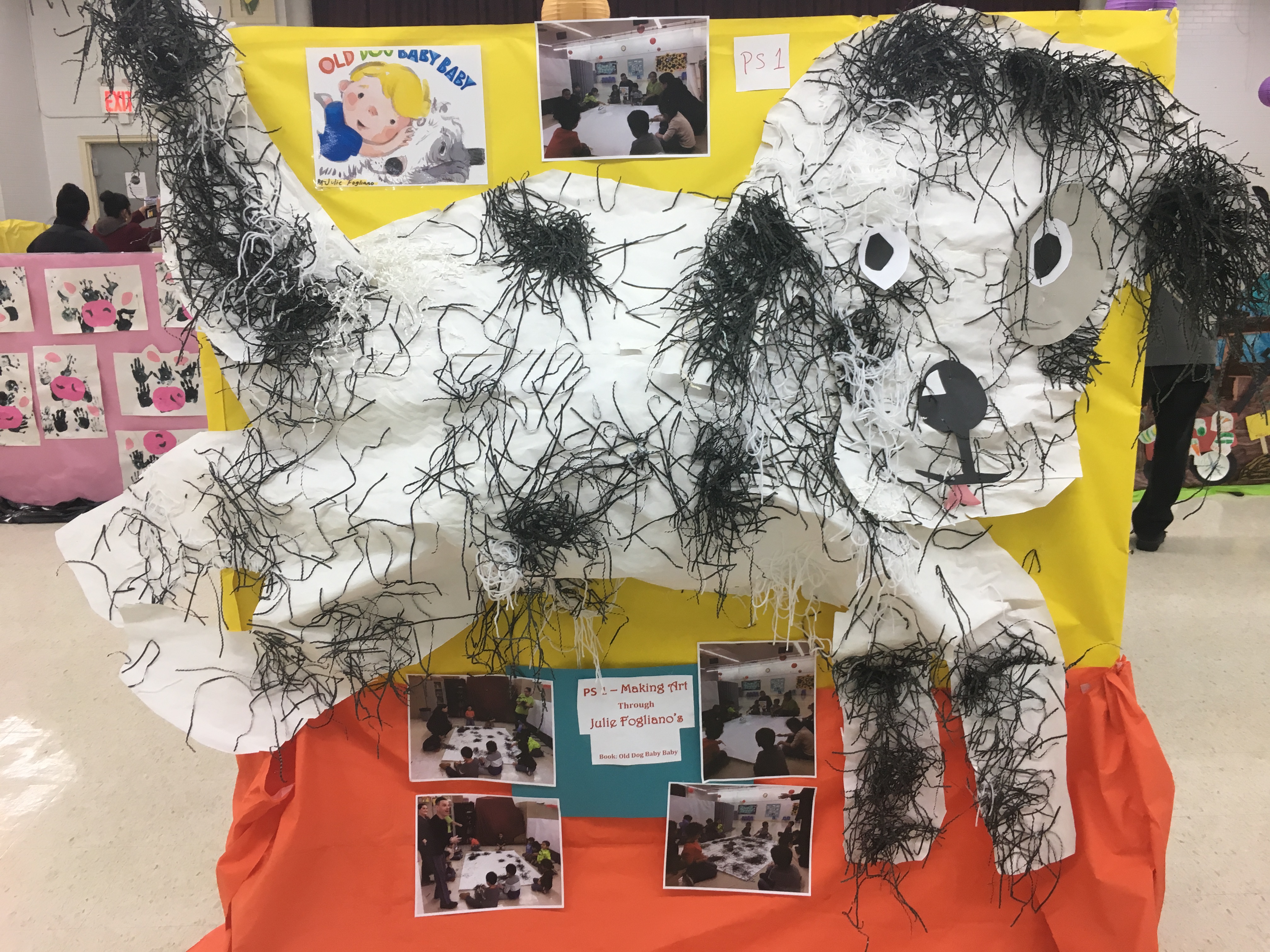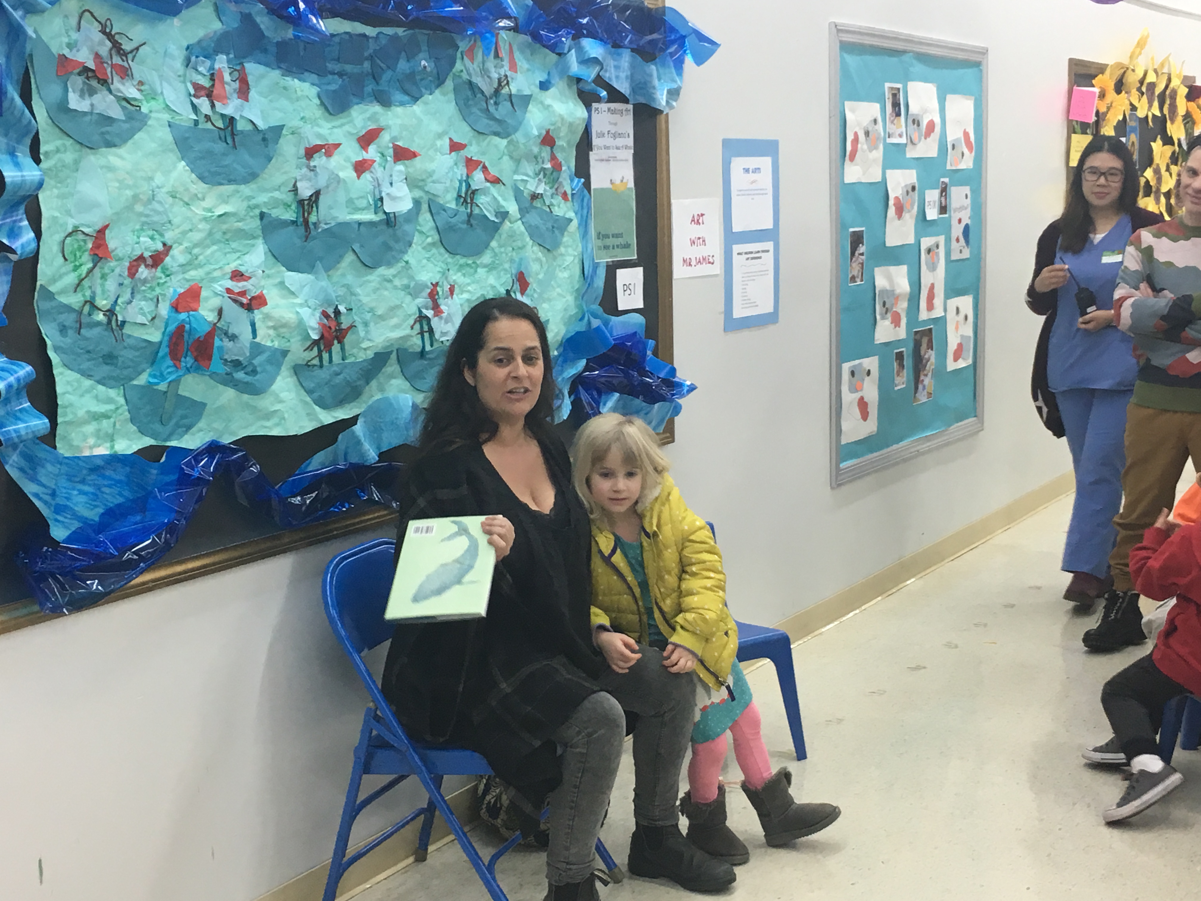 The art work was inspired by different books the children had read, such as Old Dog Baby Baby, Lucy Ladybug and This is the Sunflower. Another source of inspiration was the book If You Want to See a Whale by author Julie Fogliano, who was invited to the special event.