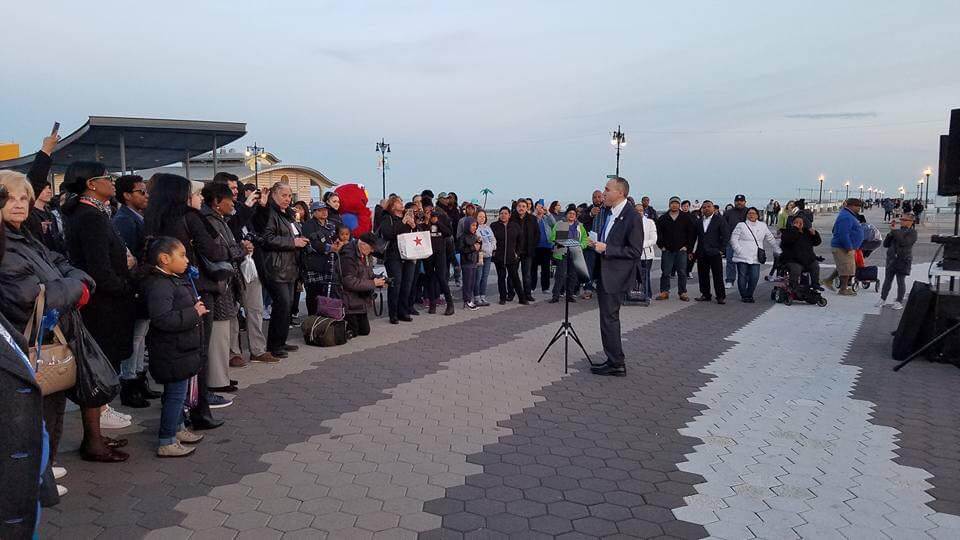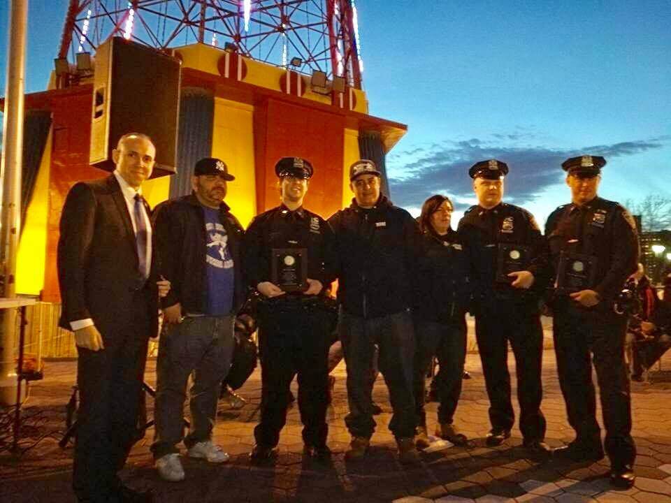 The event, which took place at West 19th Street on the Riegelmann Boardwalk at 7 p.m., also paid tribute to four 60th Precinct police officers who, just last year, rescued a young autistic boy who had gone missing and wandered into the waters off of Coney Island Beach.