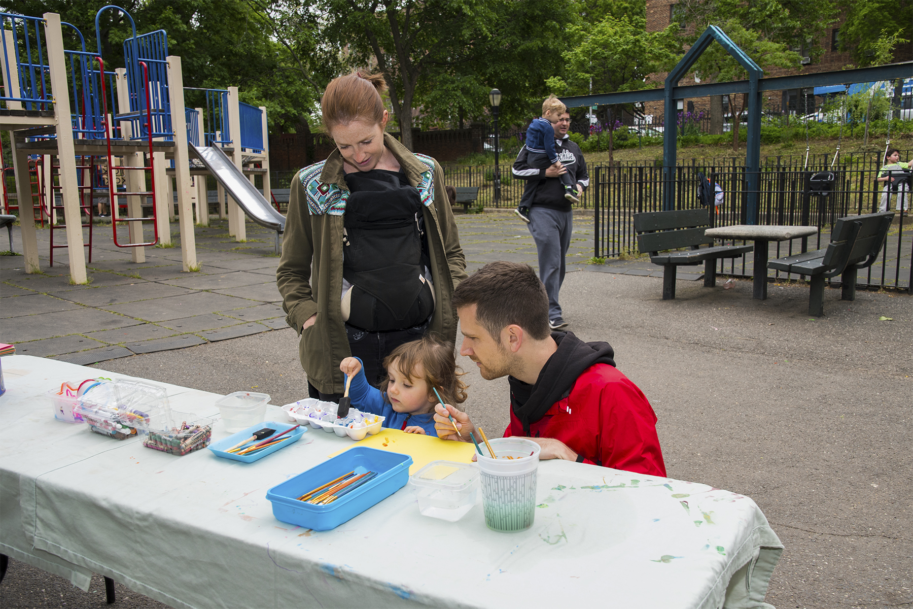 During the workshops, both of which took place from 11 a.m. to 12:30 p.m., kids jumped at the chance to get their hands on some brushes and get to work. The pint-sized Picassos successfully painted a handful of panels on the owl silhouettes along the gate – each one different from the next.
